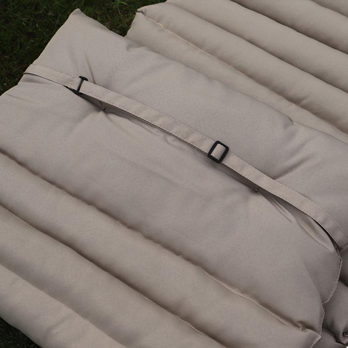 DESIGN ET CONFORT : le coussin rembourré au niveau de la tête apporte un confort optimal. Une lanière réglable présente au dos du coussin permet d'accrocher votre matelas au bain de soleil.