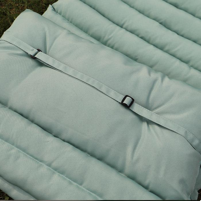 DESIGN ET CONFORT : le coussin rembourré au niveau de la tête apporte un confort optimal. Une lanière réglable présente au dos du coussin permet d'accrocher votre matelas au bain de soleil.