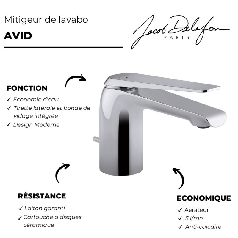 Avantages du lot de 2 mitigeur lavabo Jacob Delafon Avid :