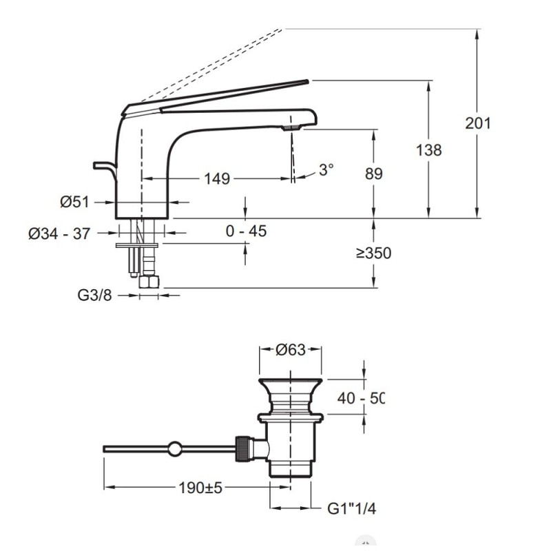 Caractéristiques techniques mitigeur lavabo Jacob Delafon Avid :