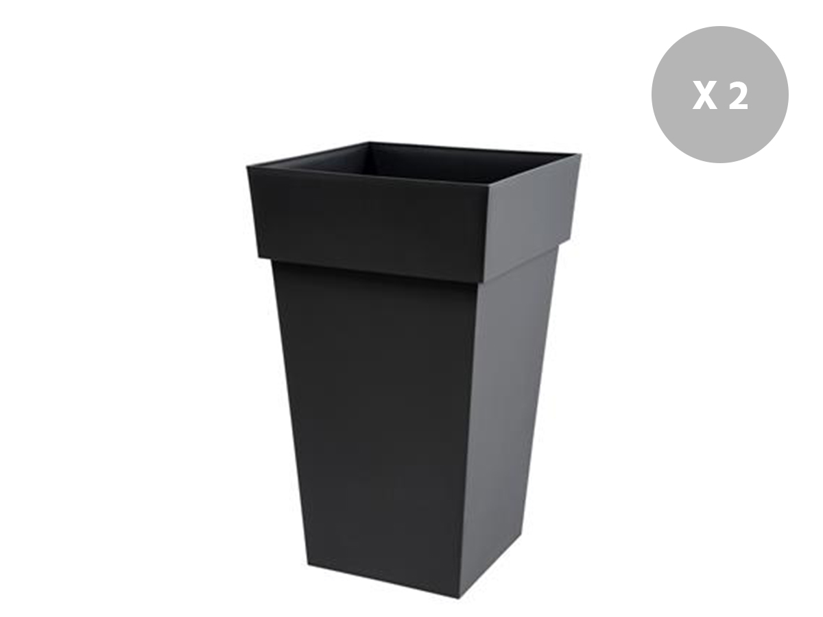 Lot de 2 pots de fleur carré Toscane 39 x H.65 cm - Anthracite