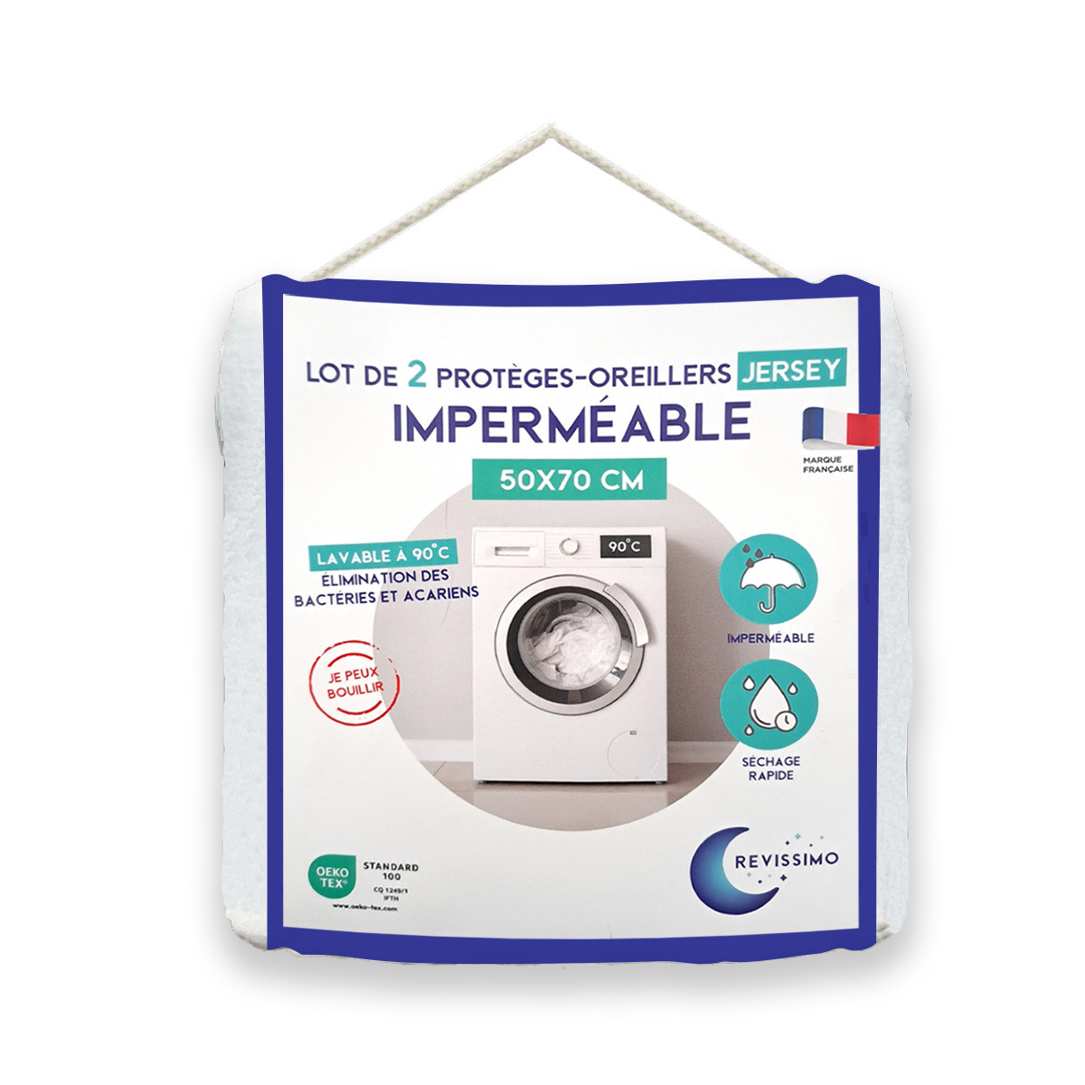 Notre lot de deux protèges oreillers imperméables en coton REVISSIMO - JE PEUX BOUILLIR vous garantit une protection maximale et un sommeil serein.