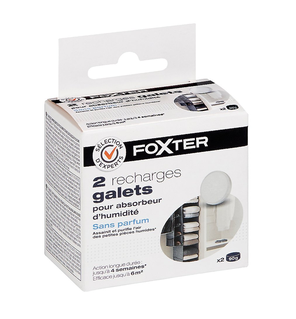 Lot de 2 recharges galets pour absorbeur d'humidité, sans parfum, 90g - Sélection d'Experts - Foxter