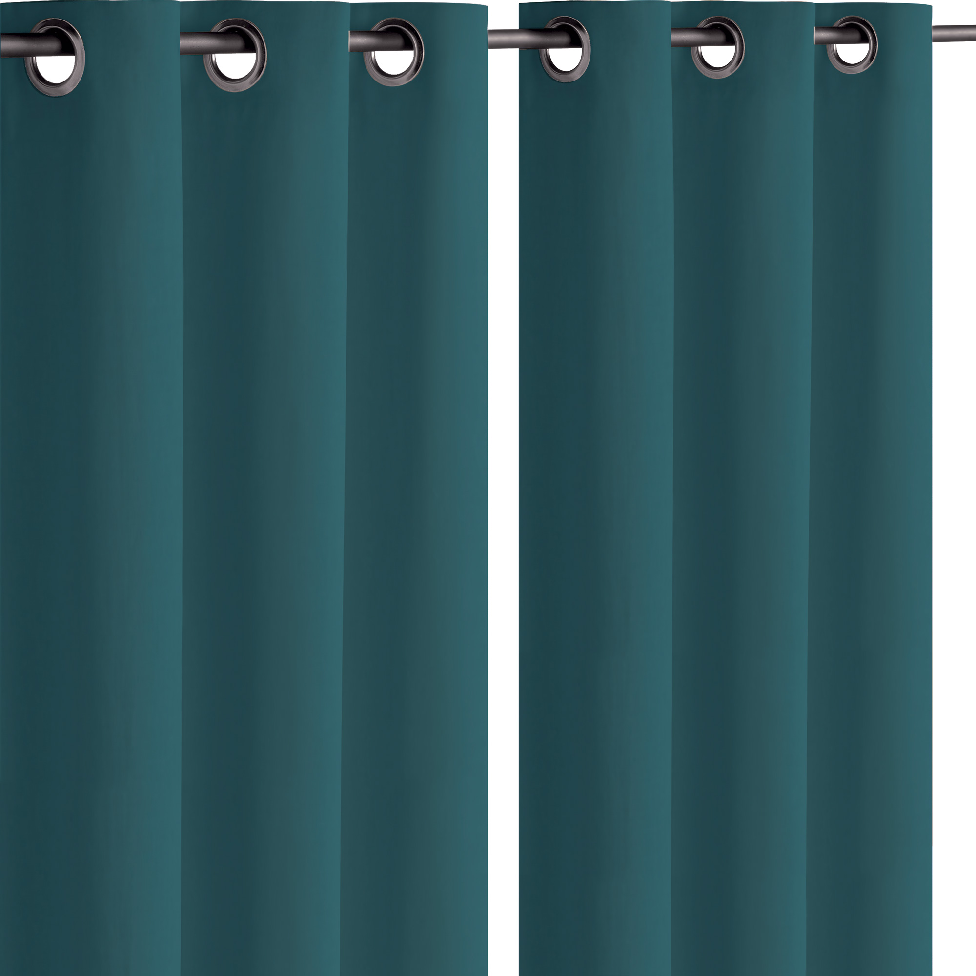 Ces rideaux occultants sont prêts à poser et d'un entretien facile. Leur tissage serré occulte la lumière du jour et isolera votre pièce de la chaleur et du froid. Composé de 2 panneaux 140x260 cm bleu paon avec 8 oeillets chacun. Ils sont finis avec un ourlet. Lavables à 30° - Entretien facile - 100% polyester