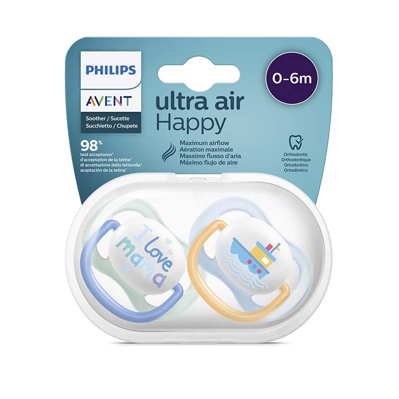 Lot de 2 sucettes ultra air 0-6 mois I LOVE MAMA/Bateau