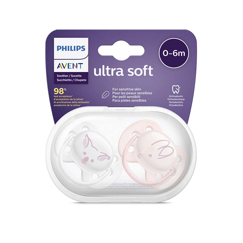 | Libellé | Lot de 2 sucettes ultra doux 0-6 mois Lapin/Blanc Philips Avent |
