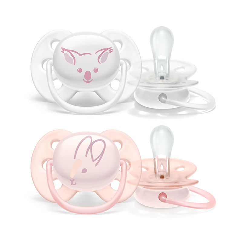 Lot de 2 sucettes ultra doux 0-6 mois Lapin/Blanc Philips Avent