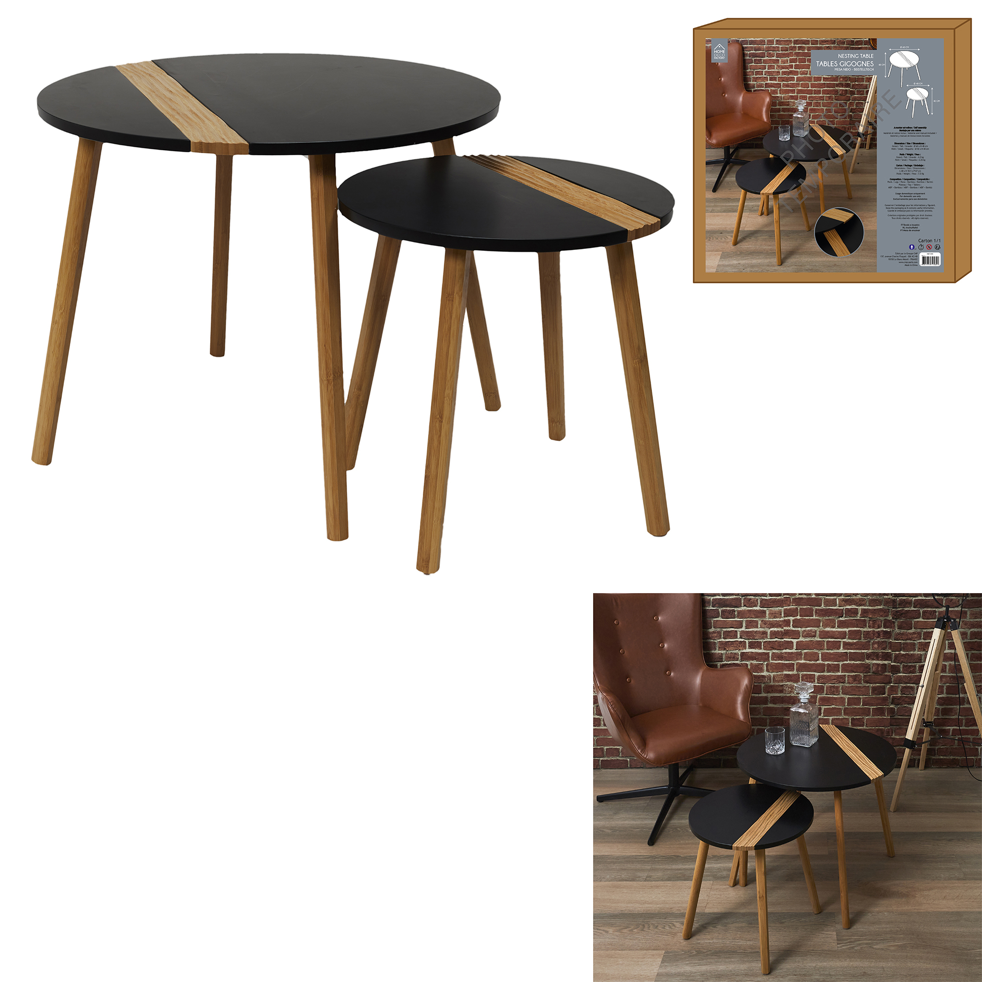 | Libellé | Lot de 2 tables gigognes "Relief Bicolore" 60cm Noir |