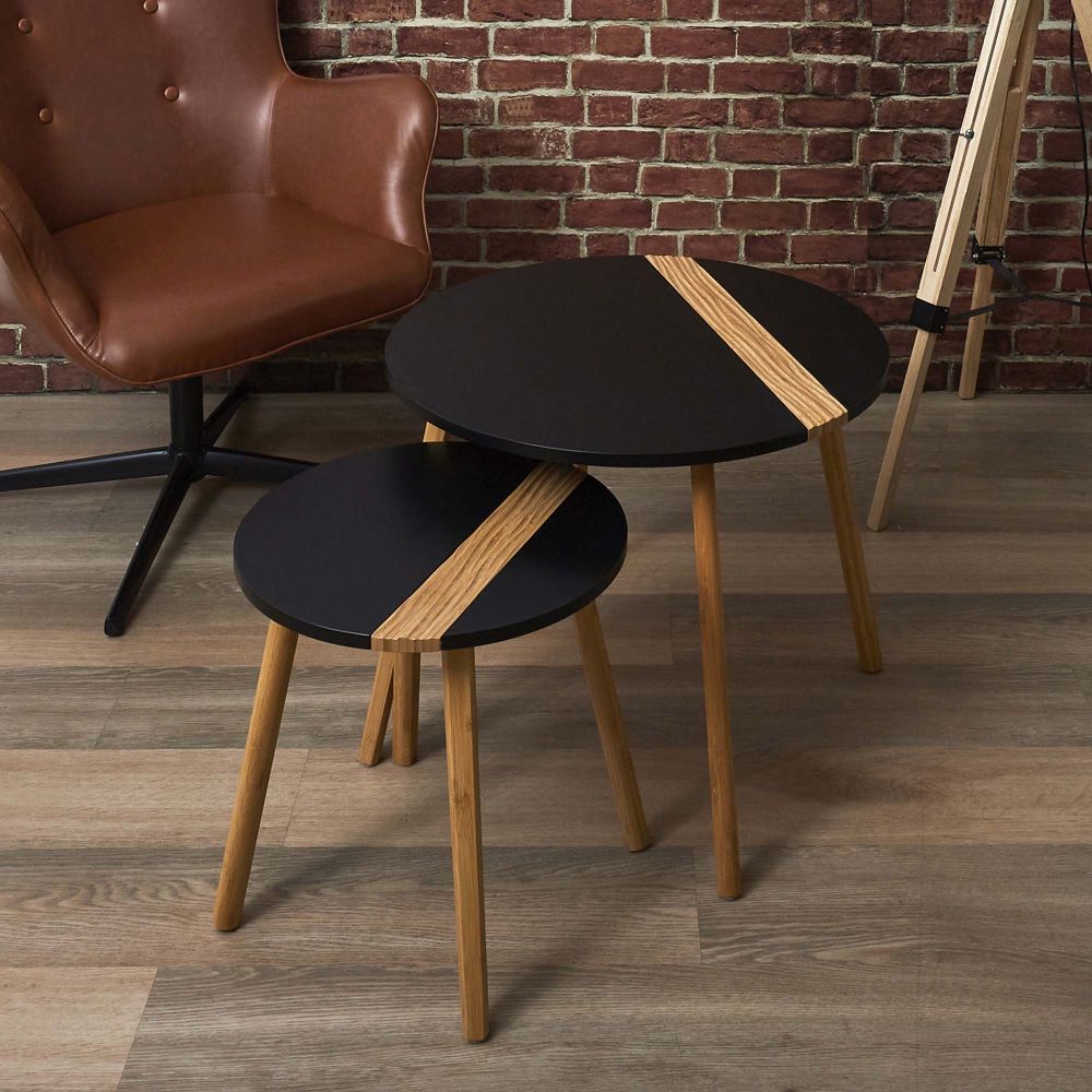 Lot de 2 tables gigognes "Relief Bicolore" 60cm Noir
