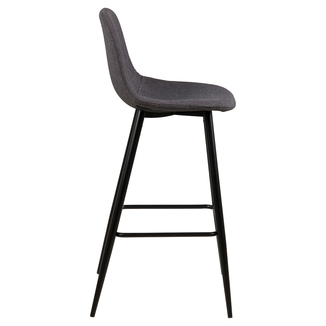 Le tabouret de bar Wilma en tissu gris allie confort et style dans un design moderne. La chaise est équipée d'un siège et d'un dossier rembourrés en 100 % polyester, qui offrent une expérience d'assise confortable. La structure en métal noir offre à la fois stabilité et look élégant, faisant de ce tabouret de bar un choix parfait pour les îlots de cuisine et les bars. Avec une hauteur d'assise de 75 cm, il est idéal pour les plateaux de table et les bars plus hauts, et sa couleur et sa construction modernes s'intègrent parfaitement dans de nombreux styles d'intérieur différents.