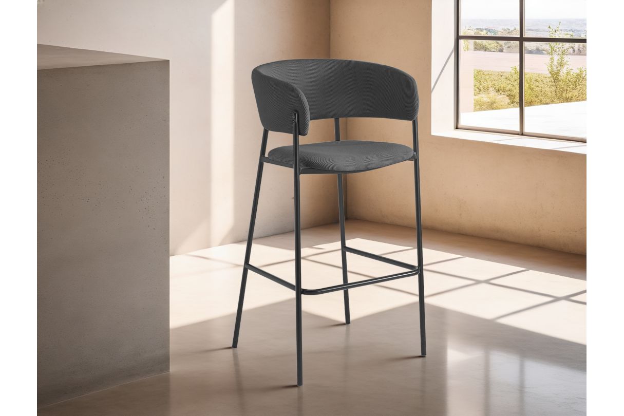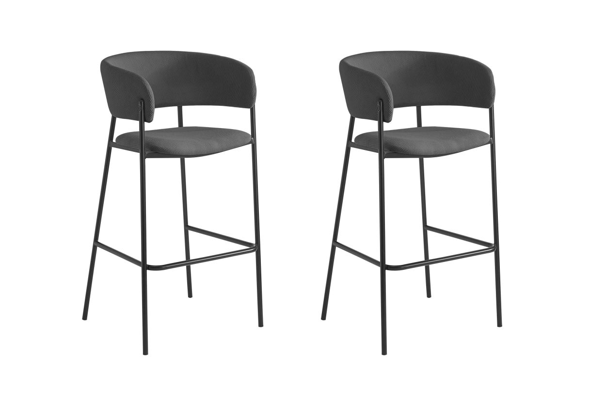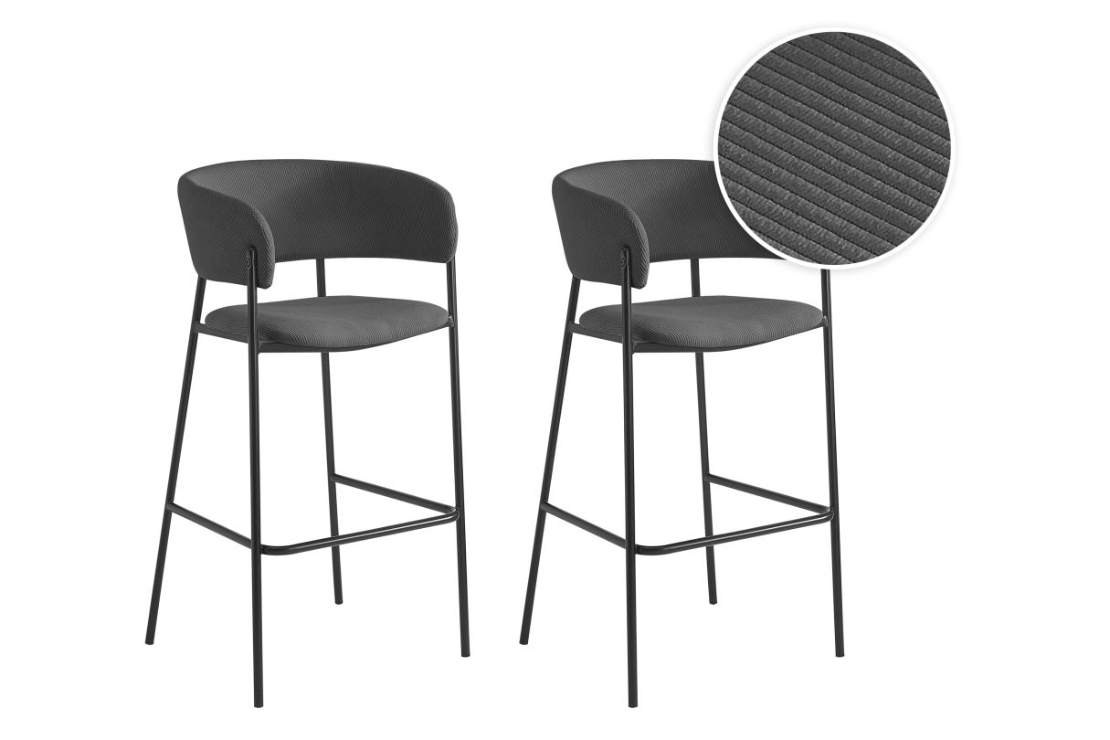 Lot de 2 tabourets de bar BOLD en velours côtelé avec pieds noirs - Gris foncé