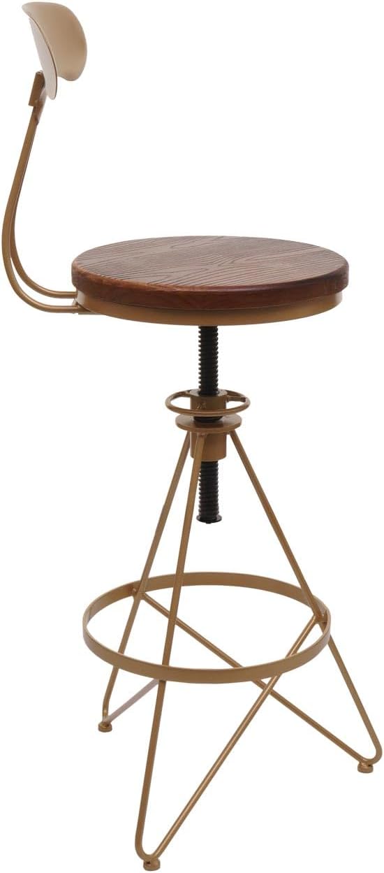 | Libellé | Lot de 2 tabourets de bar chaise haute avec repose-pieds rotatif réglable en hauteur design industriel métal doré et bois marron TDB04081 |