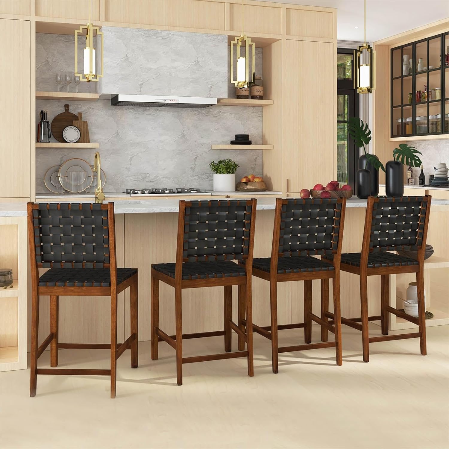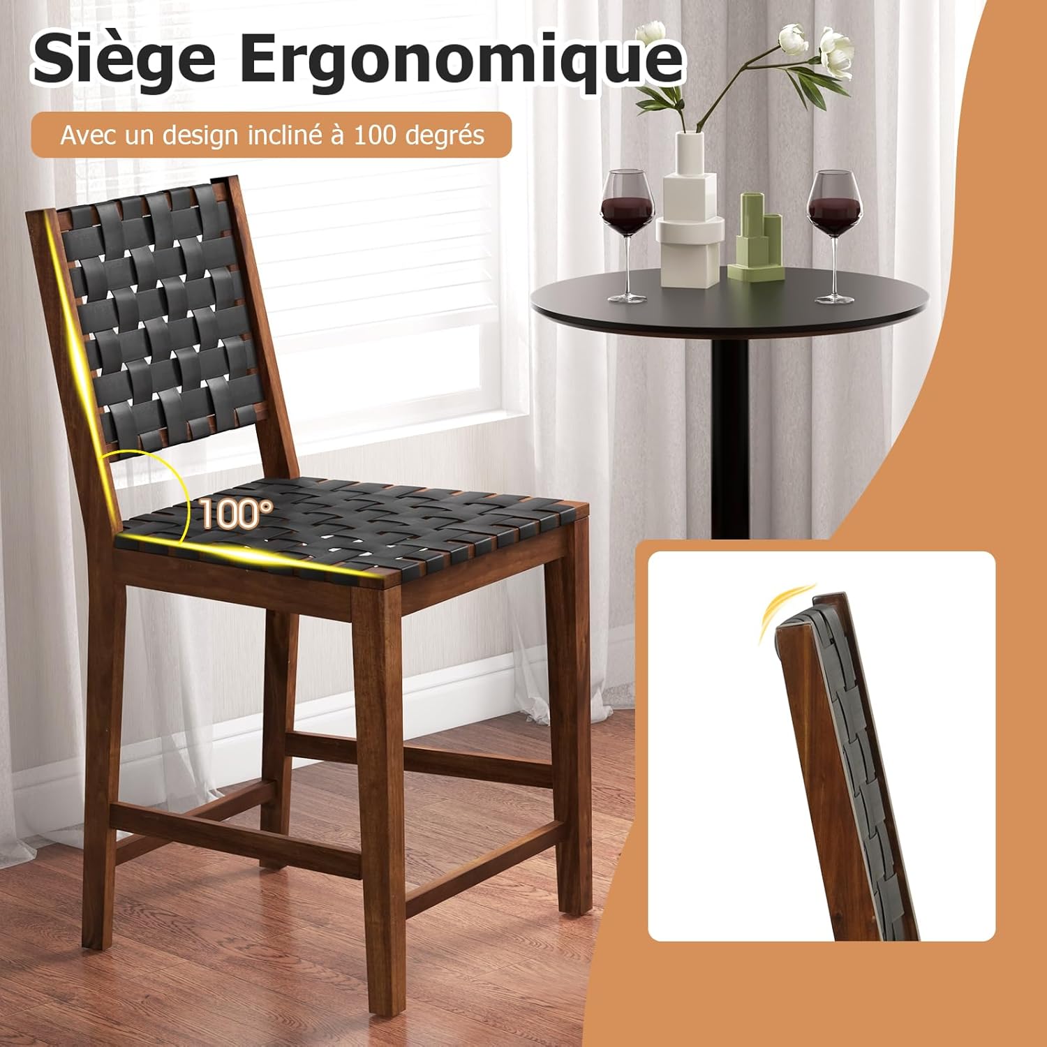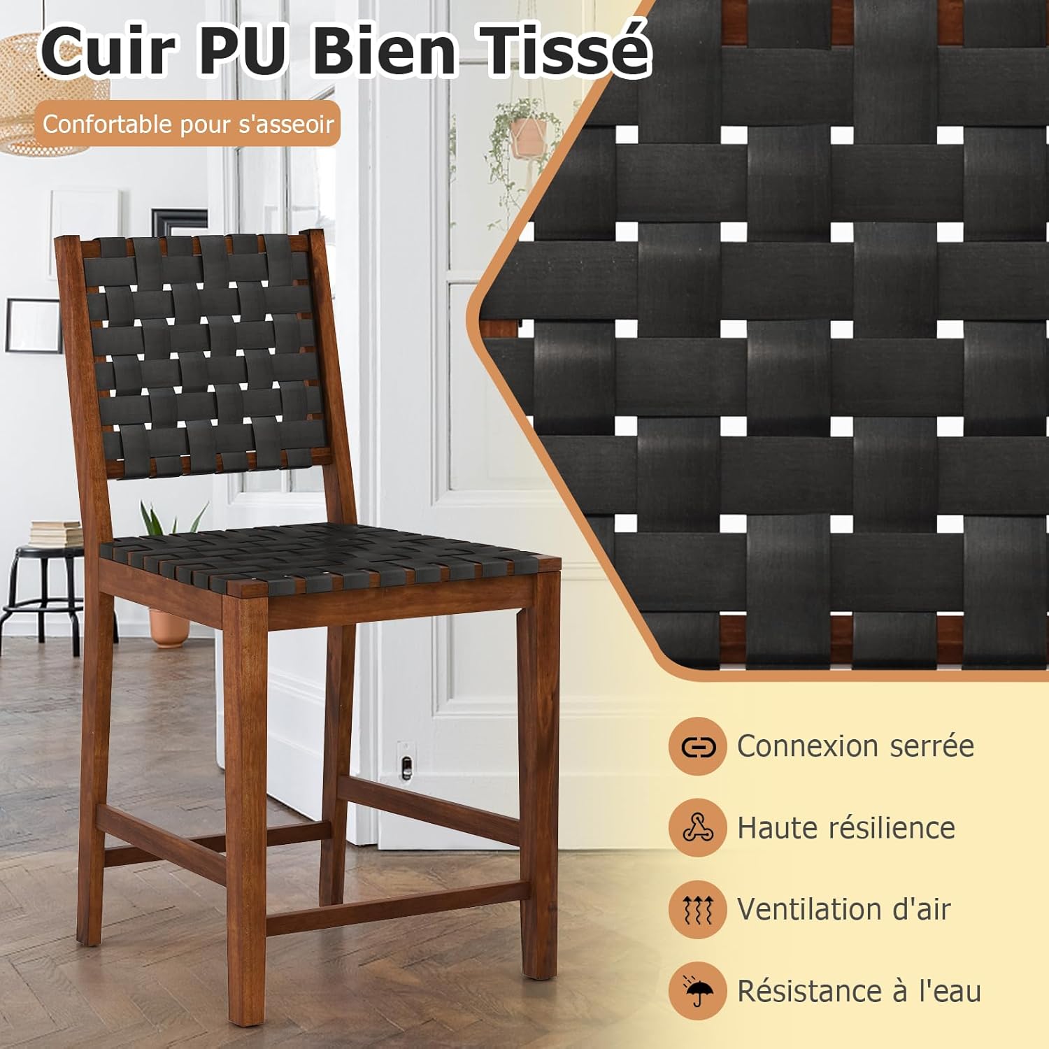 - Design tressé en cuir synthétique : le dossier et l'assise de cet ensemble de tabourets de bar sont dotés d'un design tressé en cuir synthétique qui garantit une longue durée de vie tout en étant esthétique. Le cuir synthétique tressé donne aux tabourets de bar un aspect élégant et ne se déforme pas facilement après une utilisation prolongée. L'entretien est également facile.