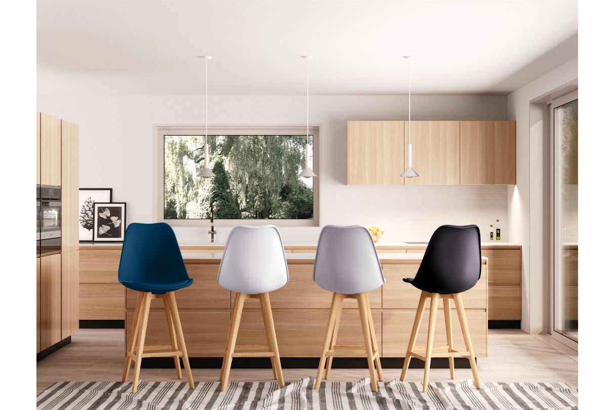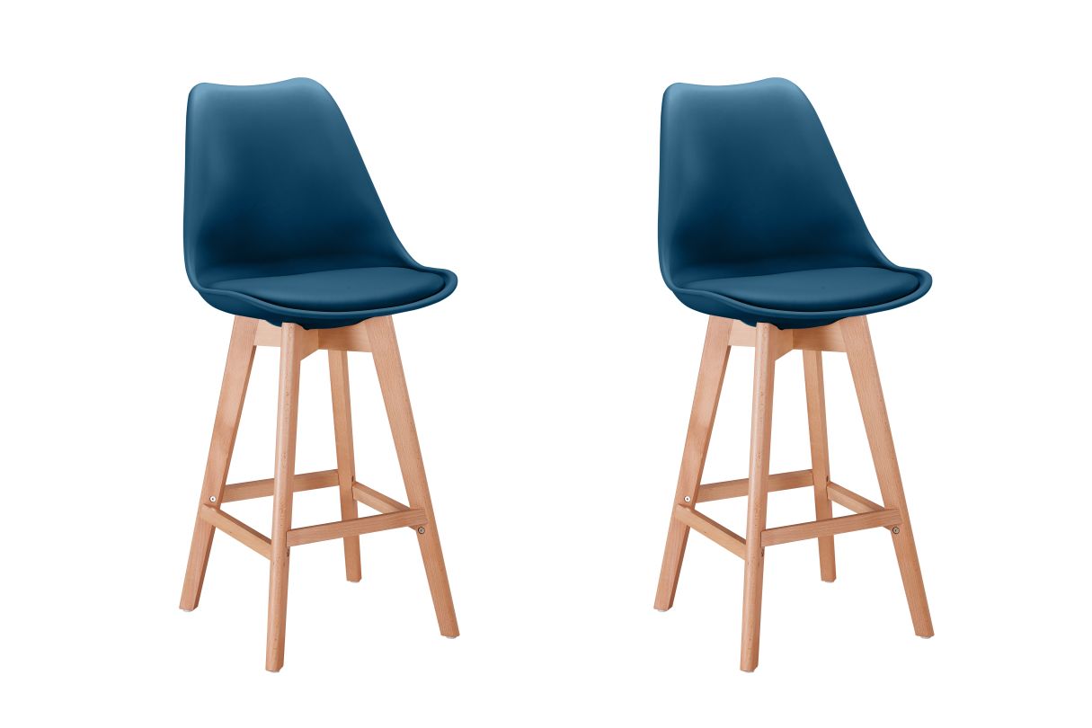 Libellé Lot de 2 tabourets de bar scandinave ANDREA avec pieds bois - Bleu