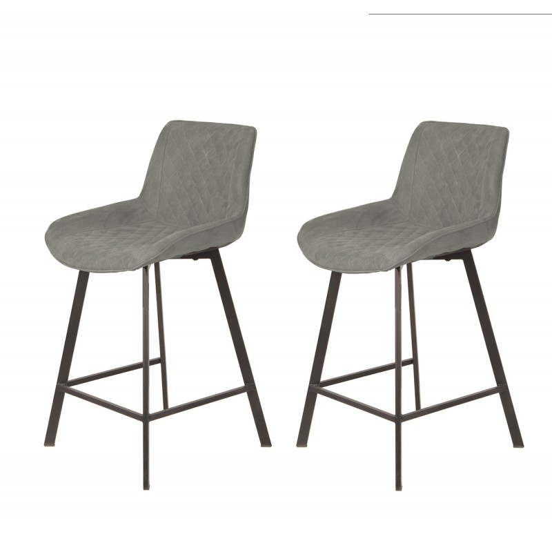 Lot de 2 tabourets tissu gris foncé doux avec piétement métal - MANHATTAN
