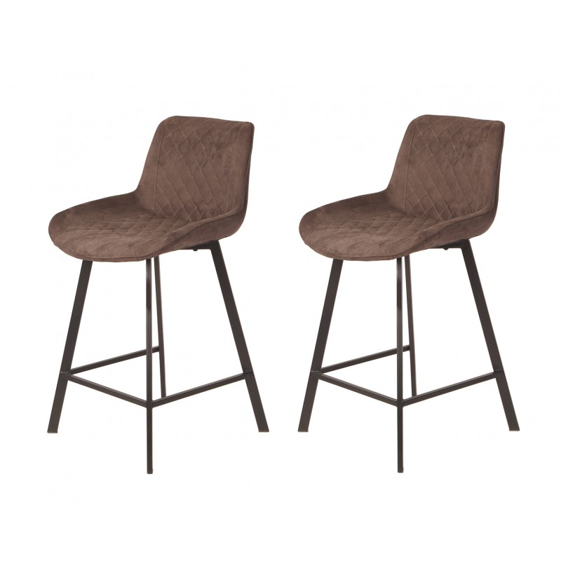 Lot de 2 tabourets tissu marron doux avec piétement métal - MANHATTAN