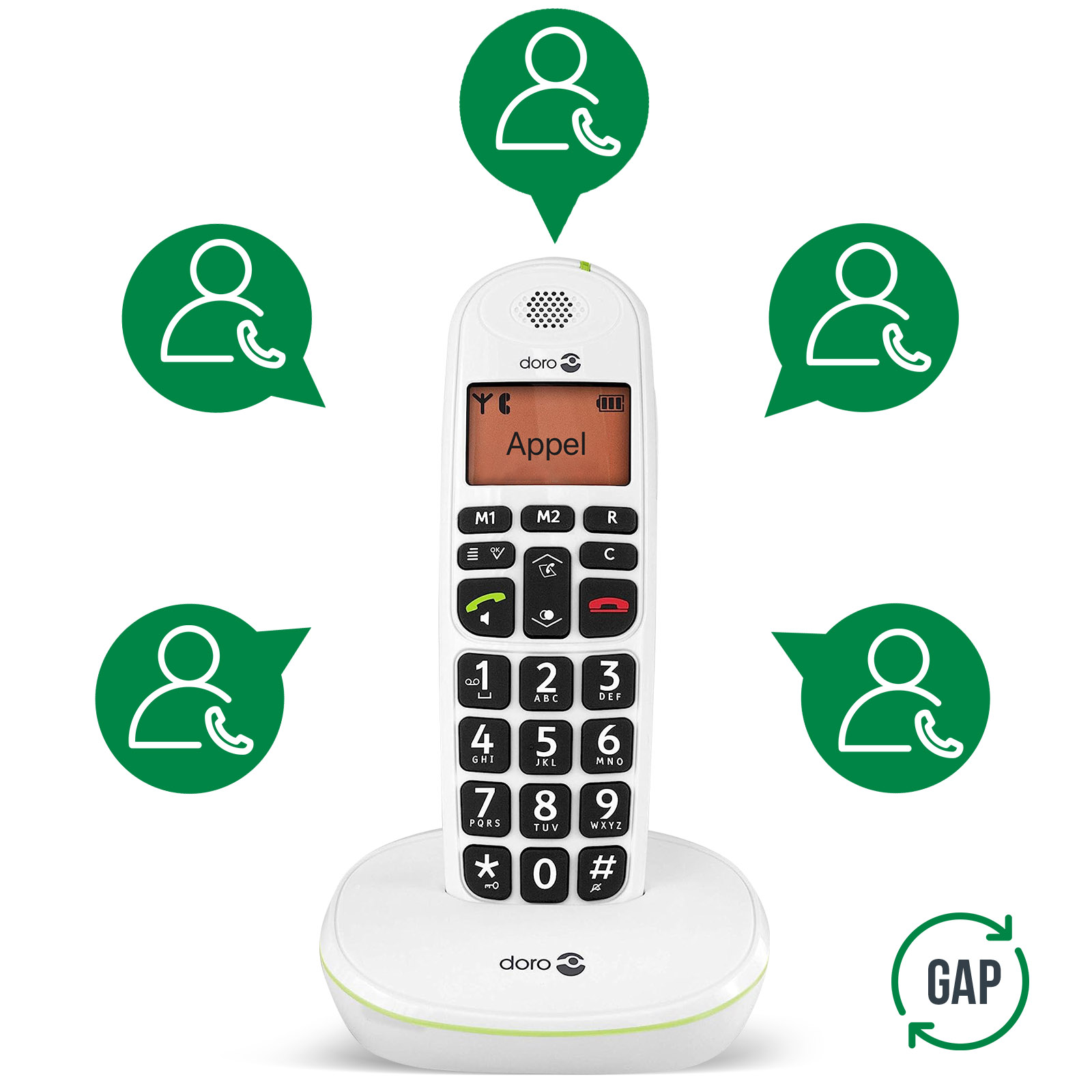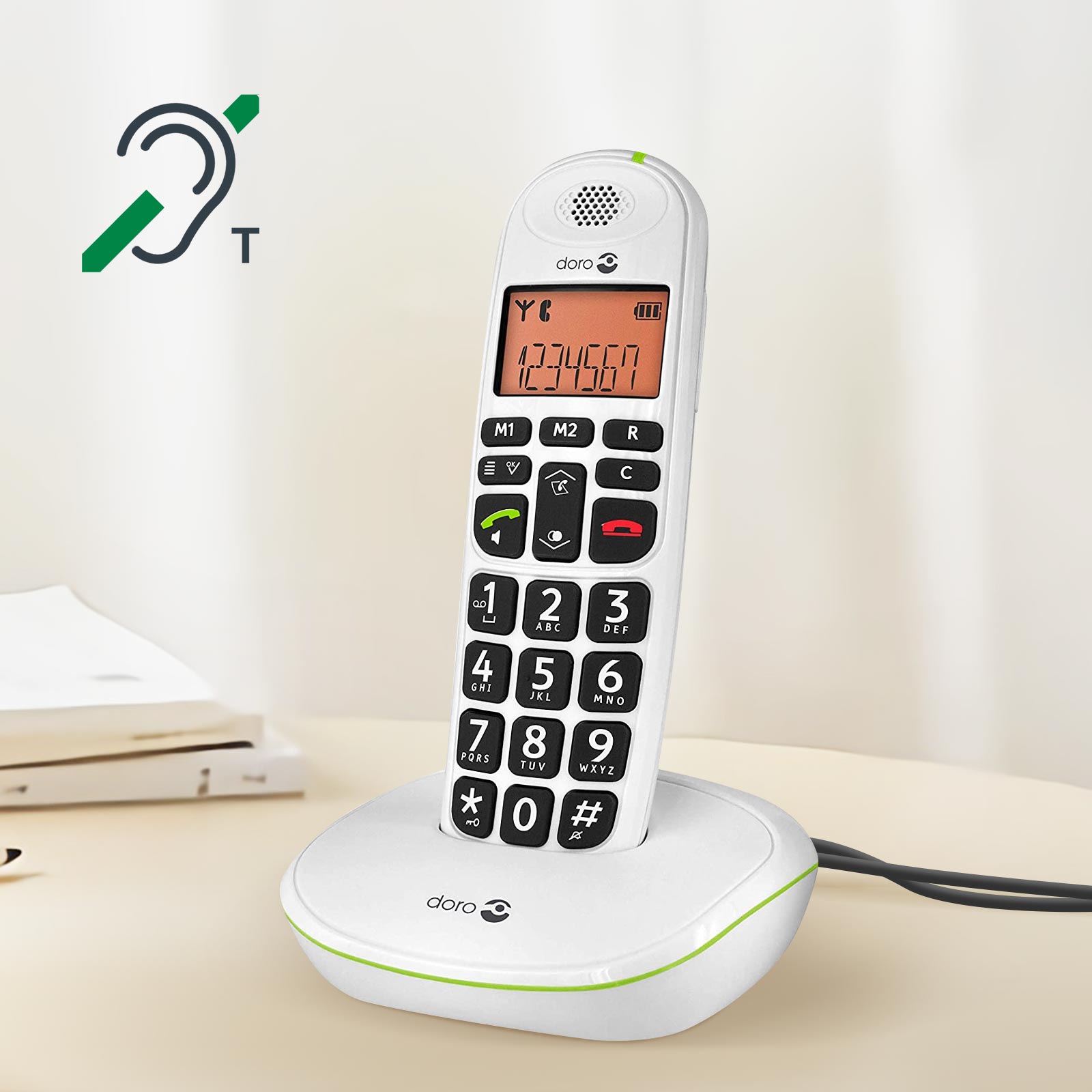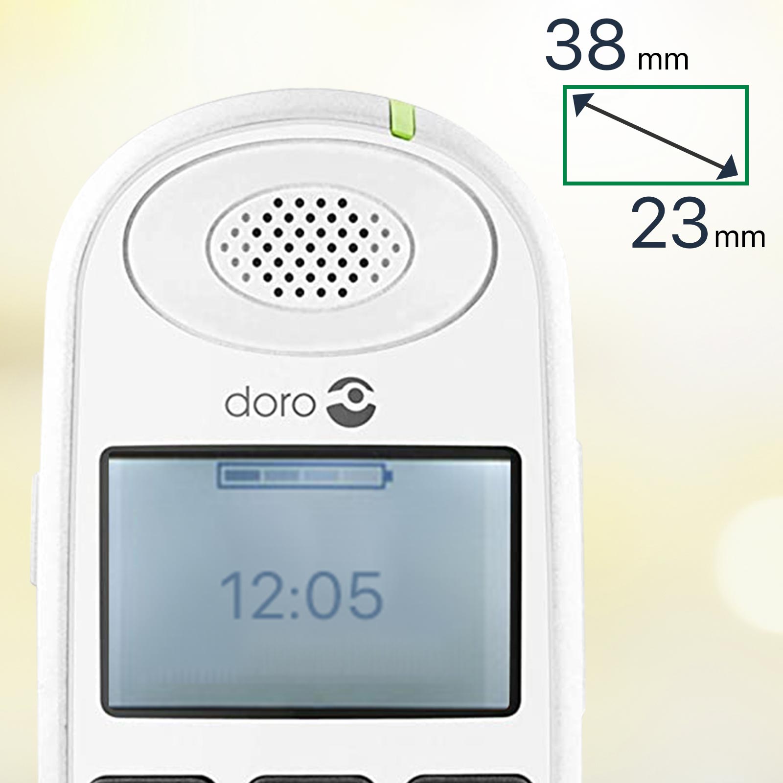 • Équipé de touches larges et bien séparées et d'un écran rétroéclairé de 23 x 38 mm avec des caractères facilement lisibles, adapté aux personnes malvoyantes