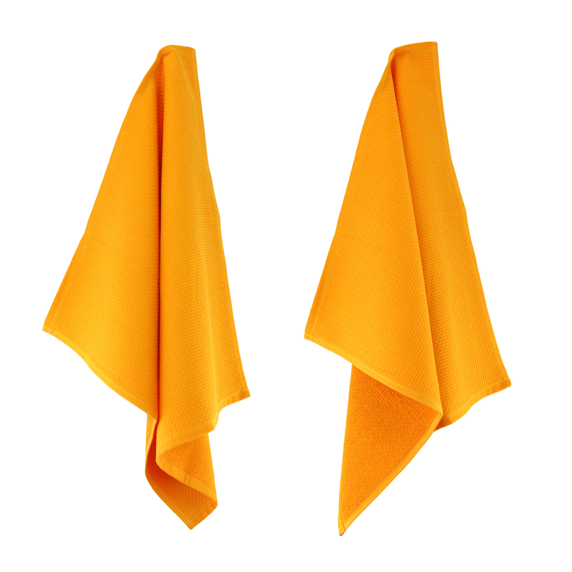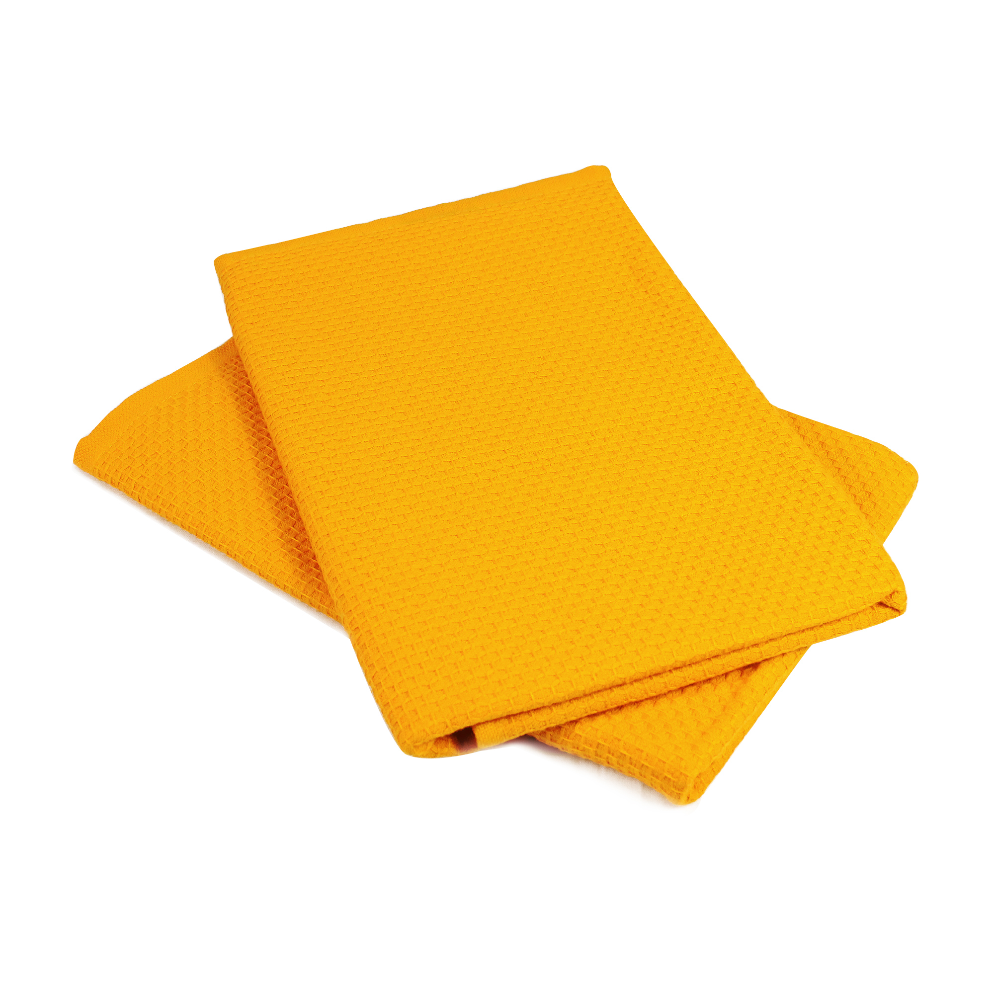 | Plus produit | Lot de 2 torchons de cuisine essuie-mains PURE KITCHEN WAFFLE uni 50x50 cm nid d'abeille aspect gaufré 100% coton 400 g/m2 - or - Fabriqué au Portugal |