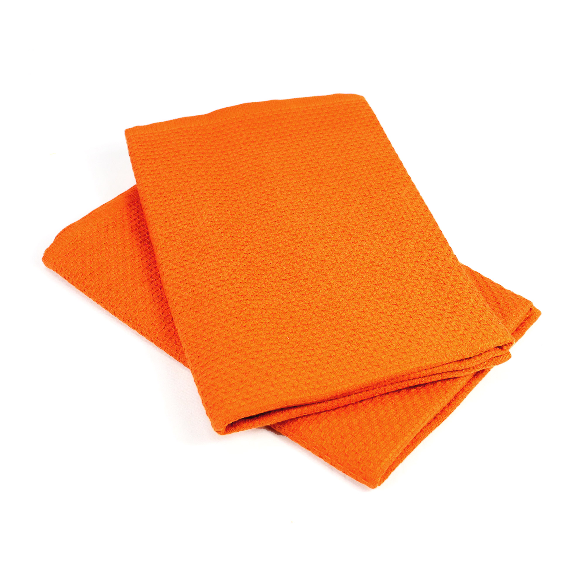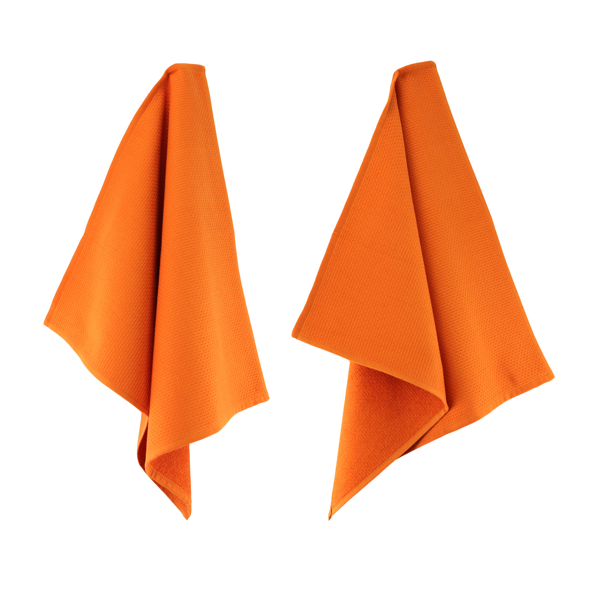 LOT DE 2 TORCHONS DE CUISINE 50x50 cm, 100% COTON 400 g/m2 - PURE KITCHEN WAFFLE ORANGE
