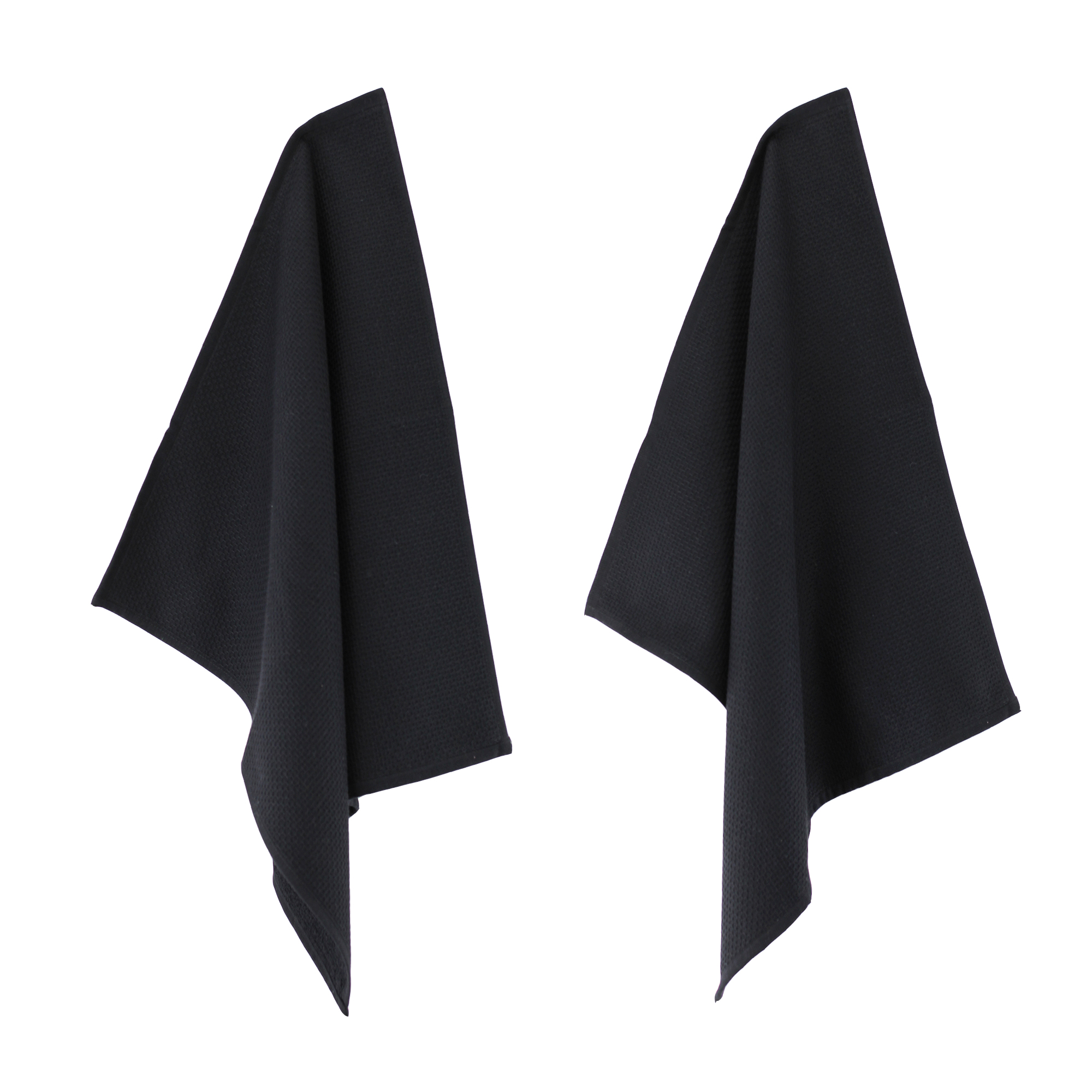 LOT DE 2 TORCHONS DE CUISINE 50x50 cm, 100% COTON 400 g/m2 - PURE KITCHEN WAFFLE NOIR