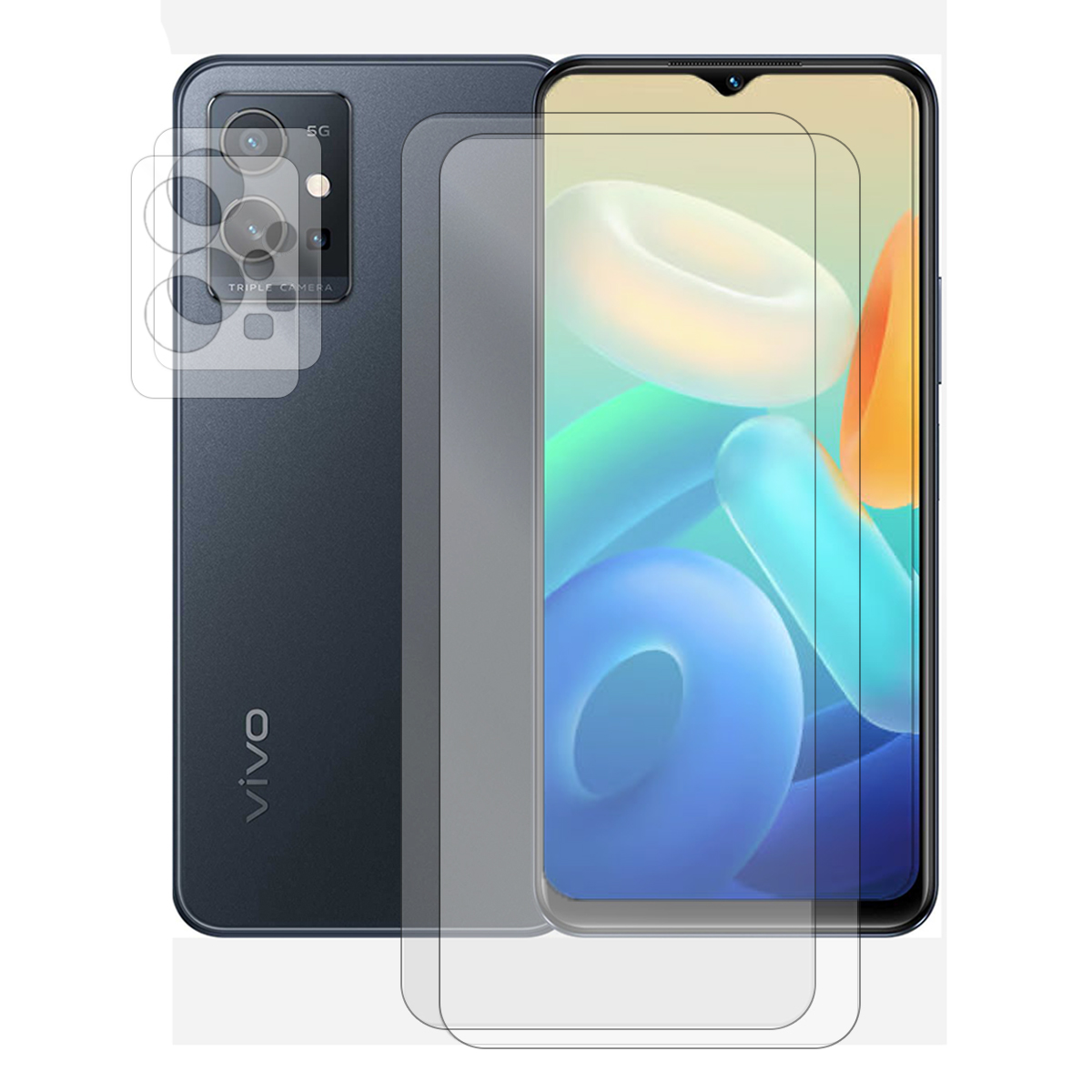 Lot de 2 Verre trempé pour vivo Y76 5G 6.58" V2124+lot de 2 Verre trempé d'objectif camera arrière