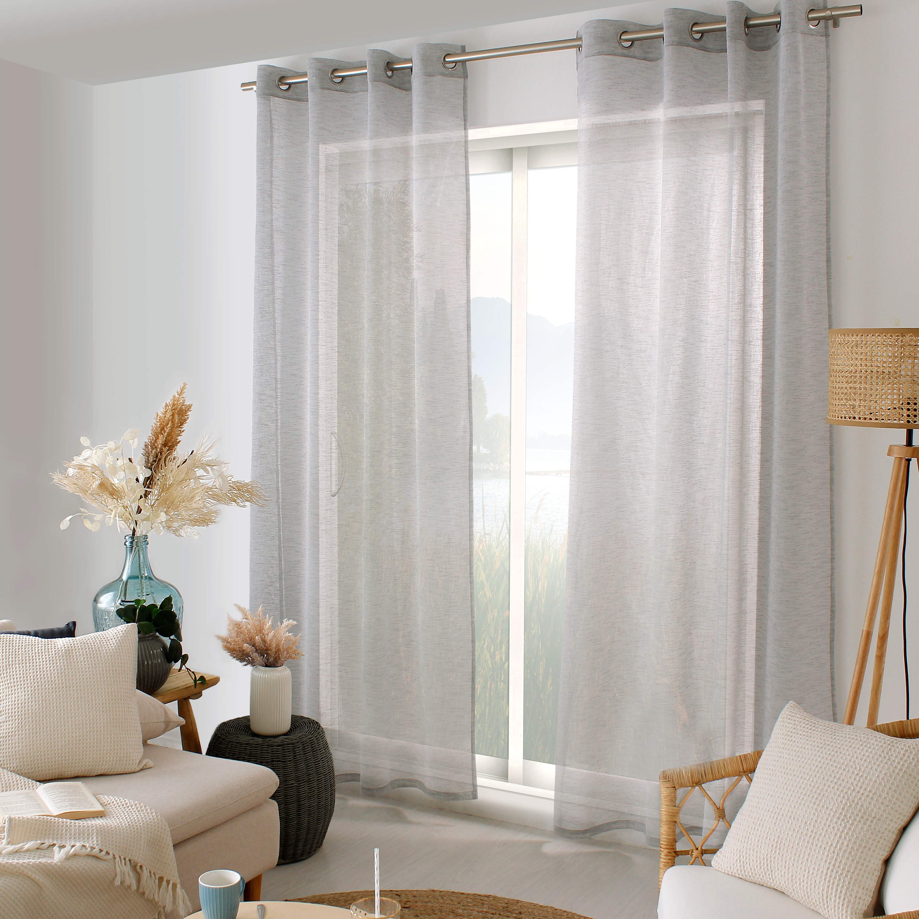 | Libellé | Lot de 2 voilages à œillets, gris galet, effet lin, collection Maya |