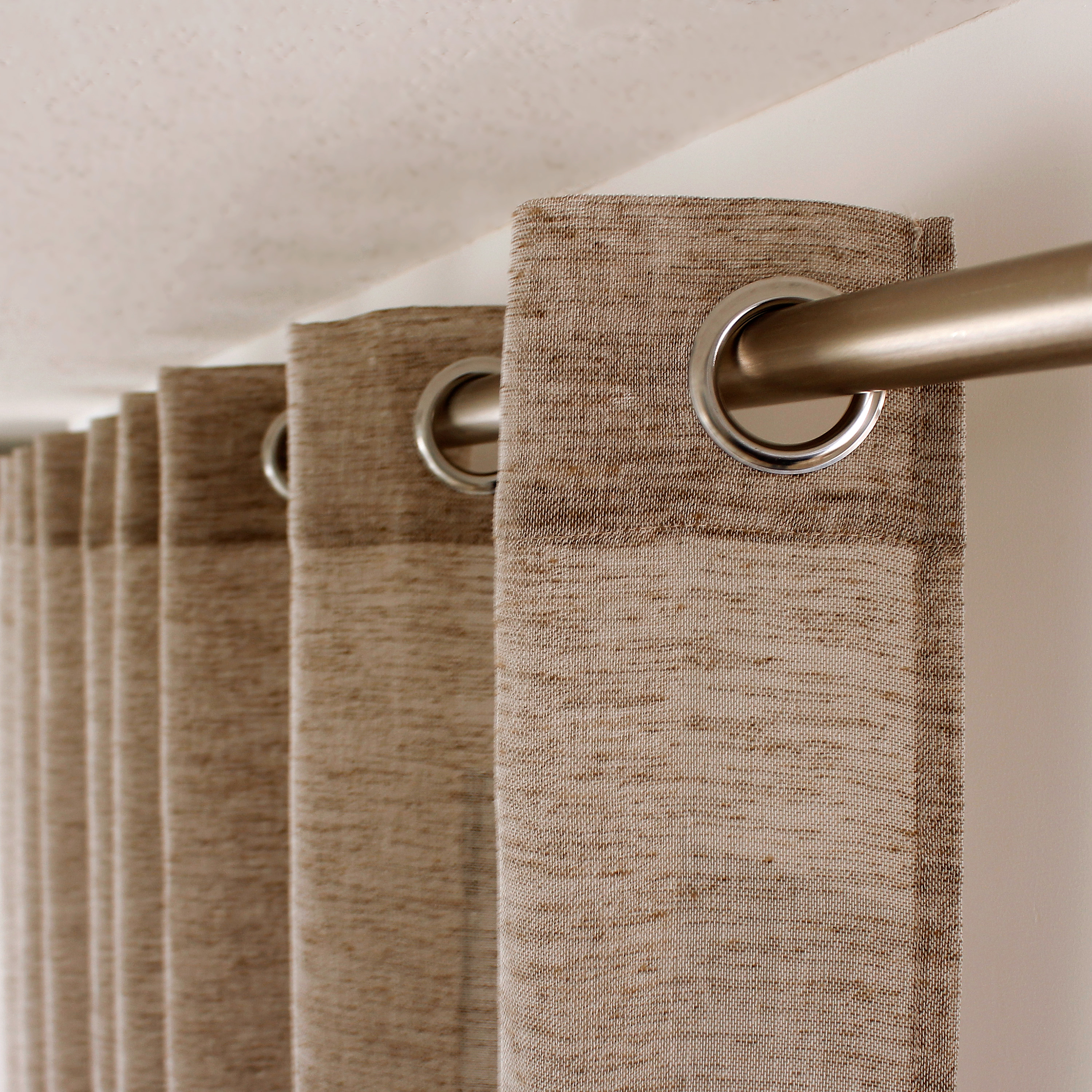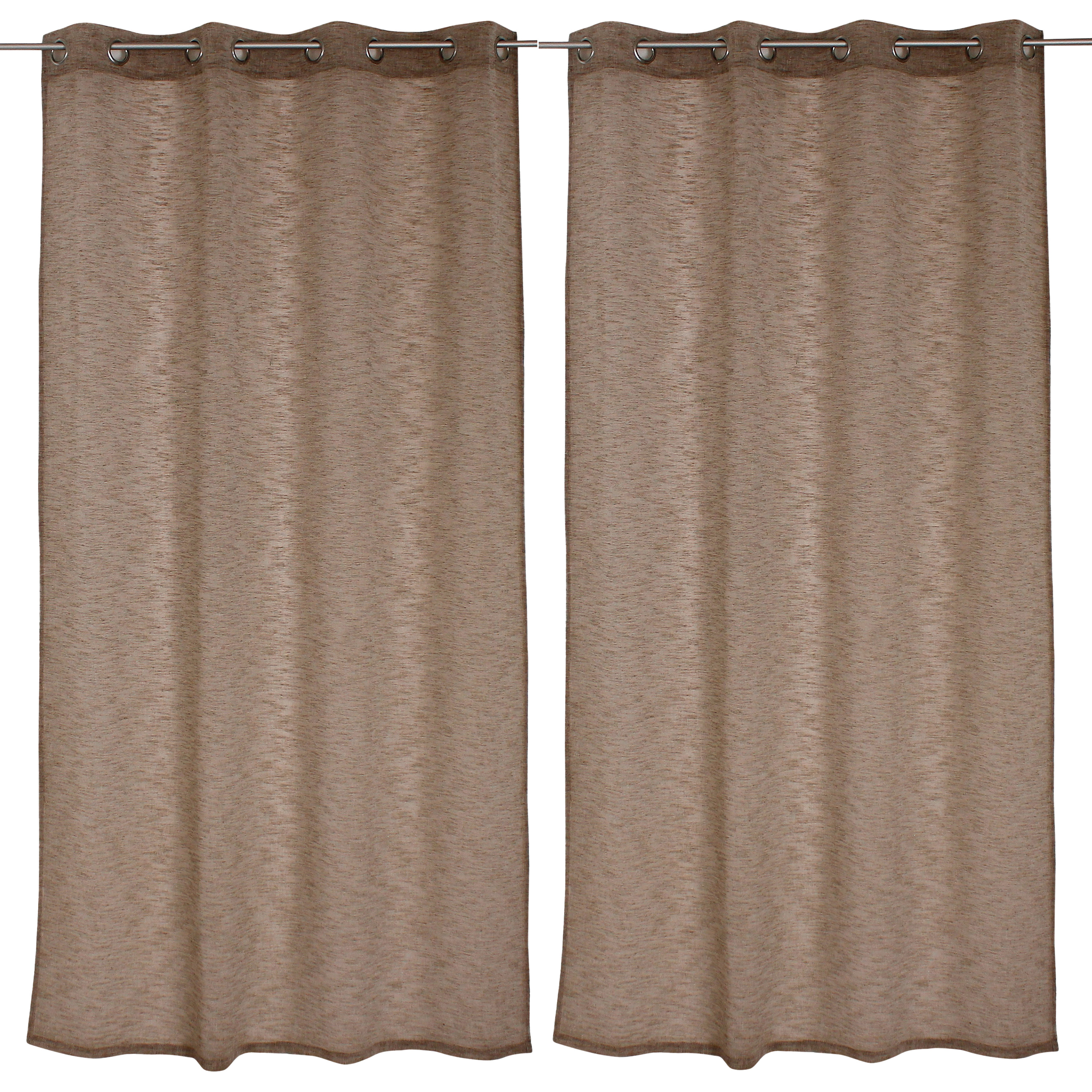Lot de 2 voilages à œillets, marron chocolat, effet lin, collection Maya