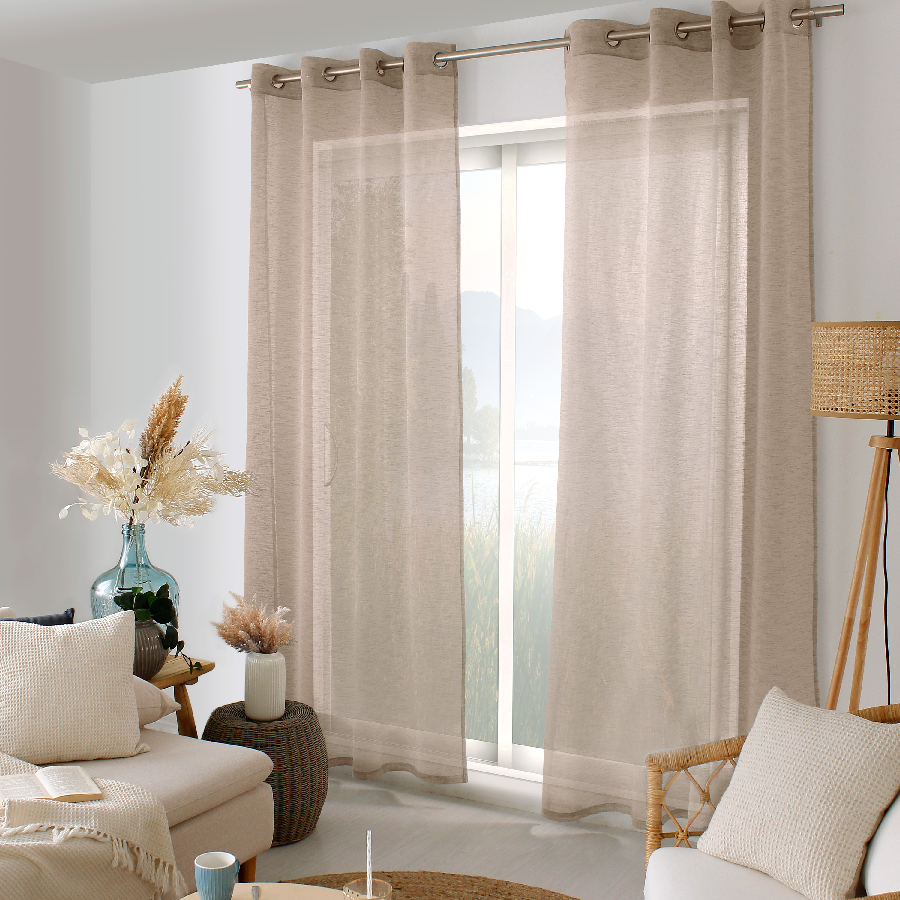 | Libellé | Lot de 2 voilages à œillets, marron vison, effet lin, collection Maya |