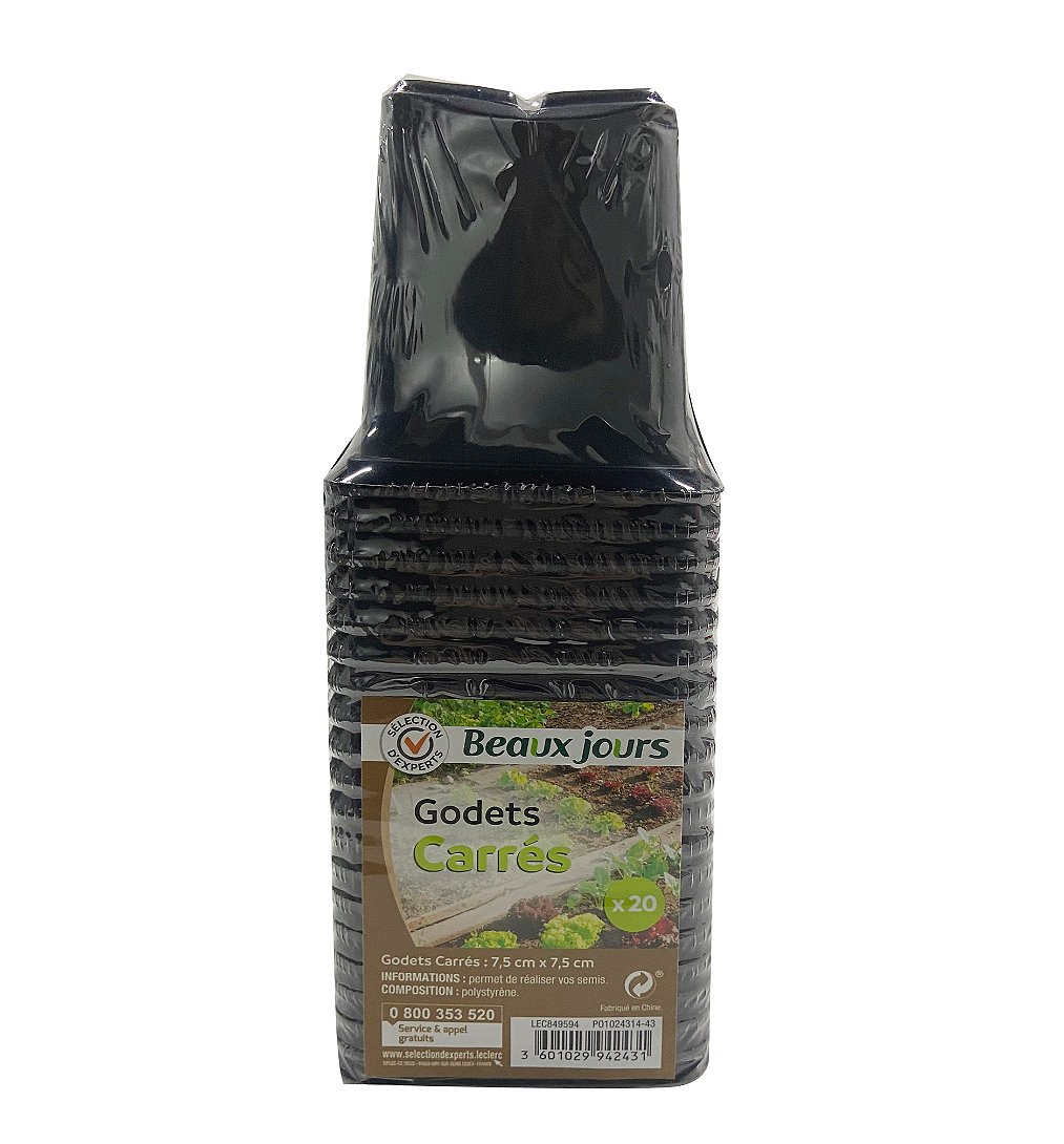 | Libellé | Lot de 20 godets carrés 7,5 cm - Sélection d'Experts - Beaux Jours |