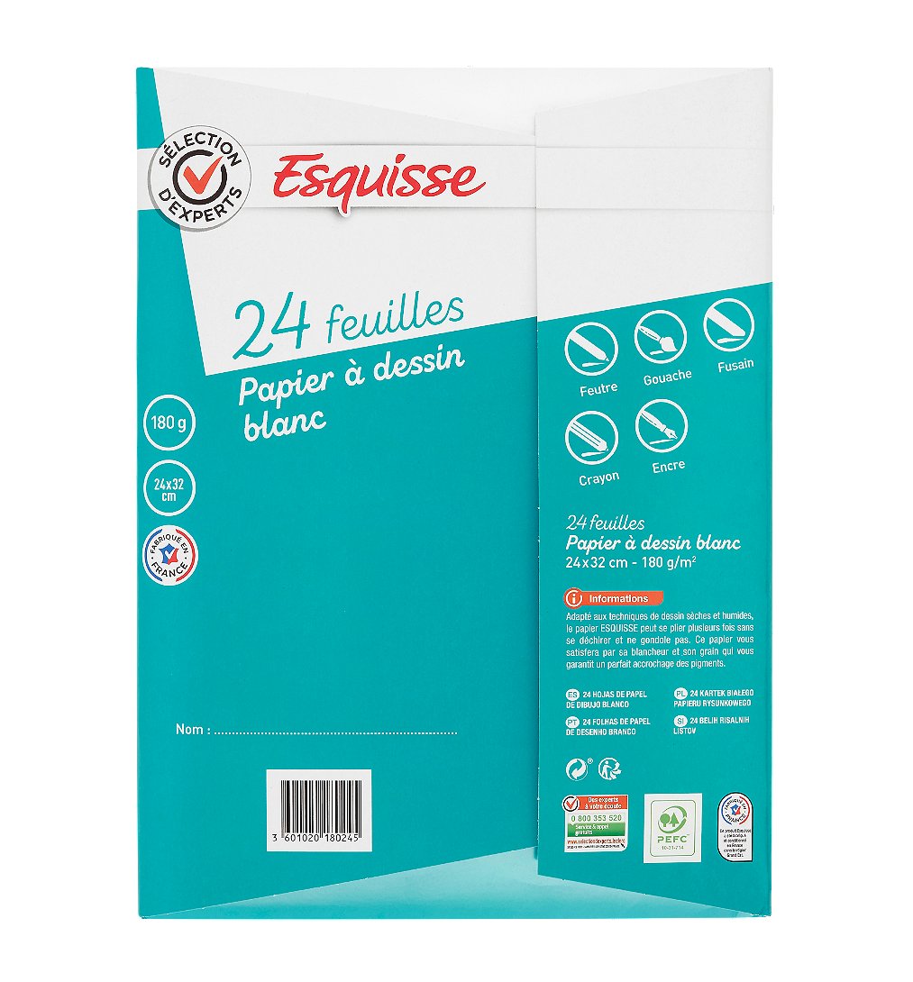 | Libellé | Lot de 24 feuilles papier dessin blanc 24x32cm- Sélection d'Experts - Esquisse |