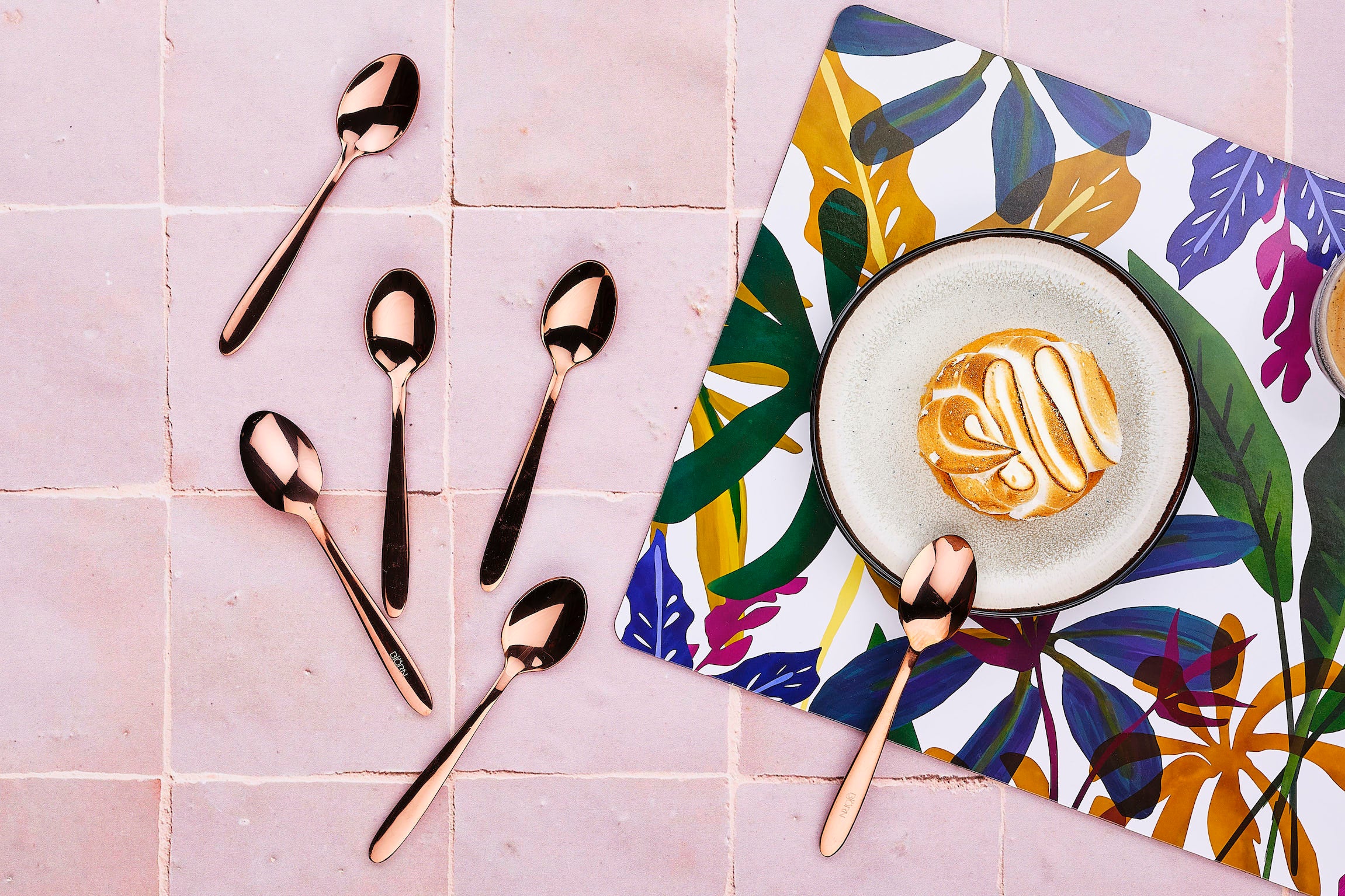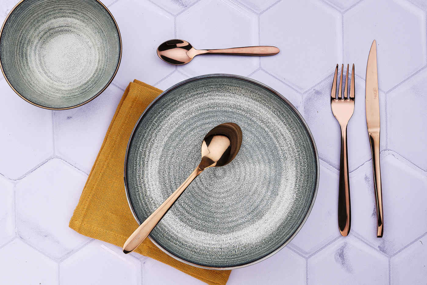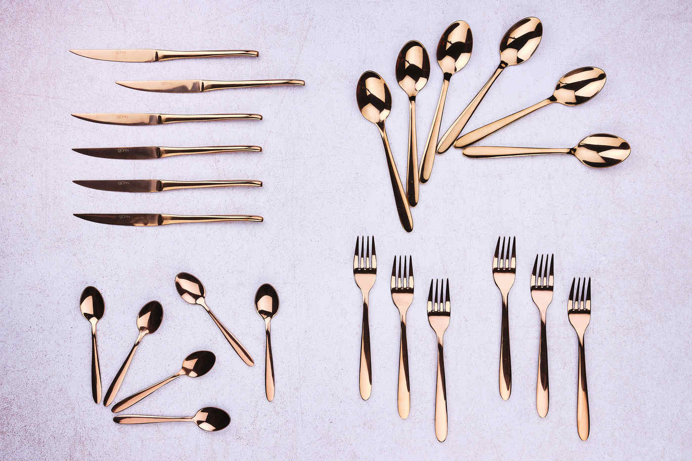 Fabriqué en acier inoxydable pour résister à une utilisation quotidienne, ces couverts sont durables et d'un entretien facile au lave-vaisselle. Dans sa version de couleur cuivrée avec une finition brillante, ce modèle à l'effet miroir chic et éclatant illuminera votre table et étonnera vos convives.