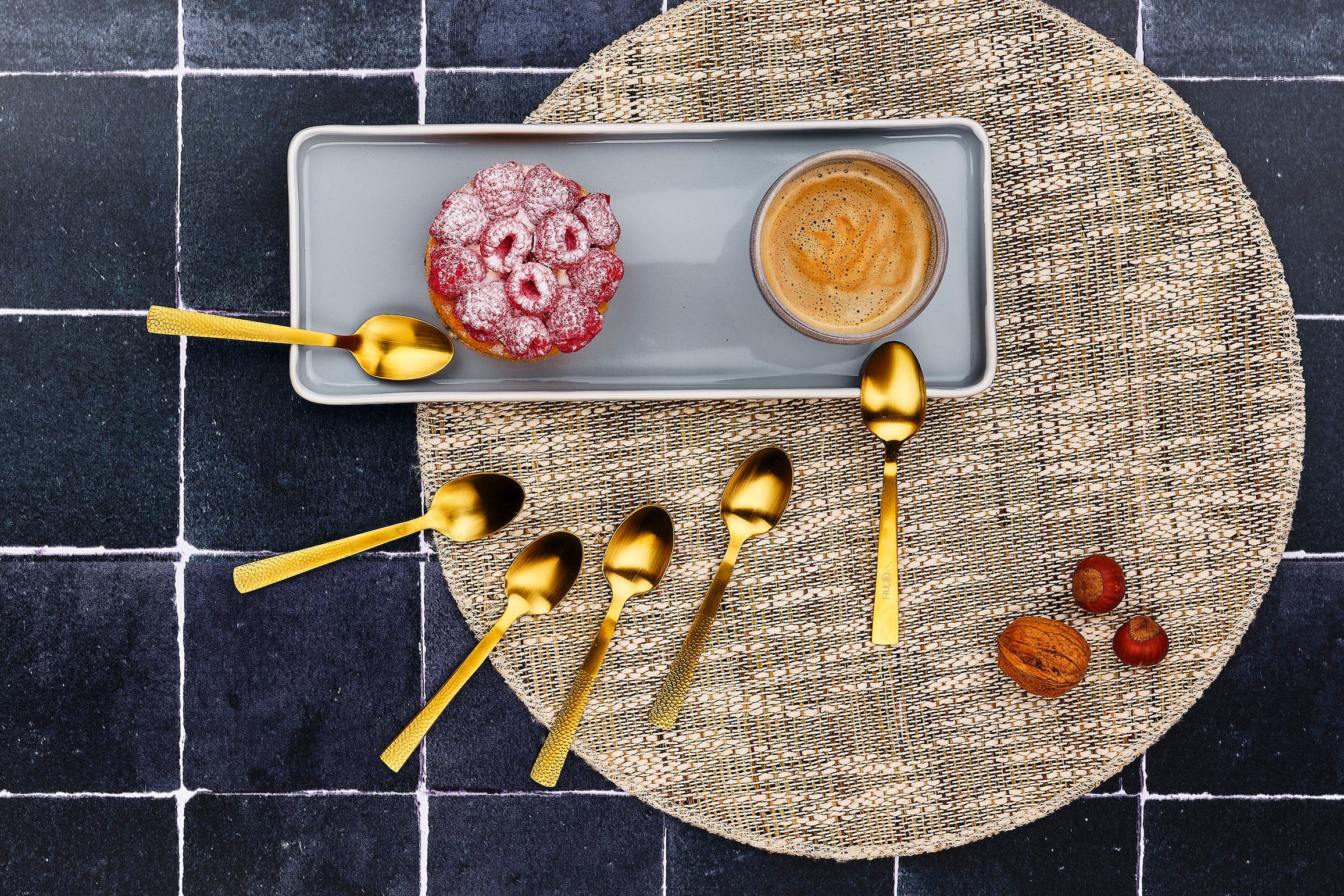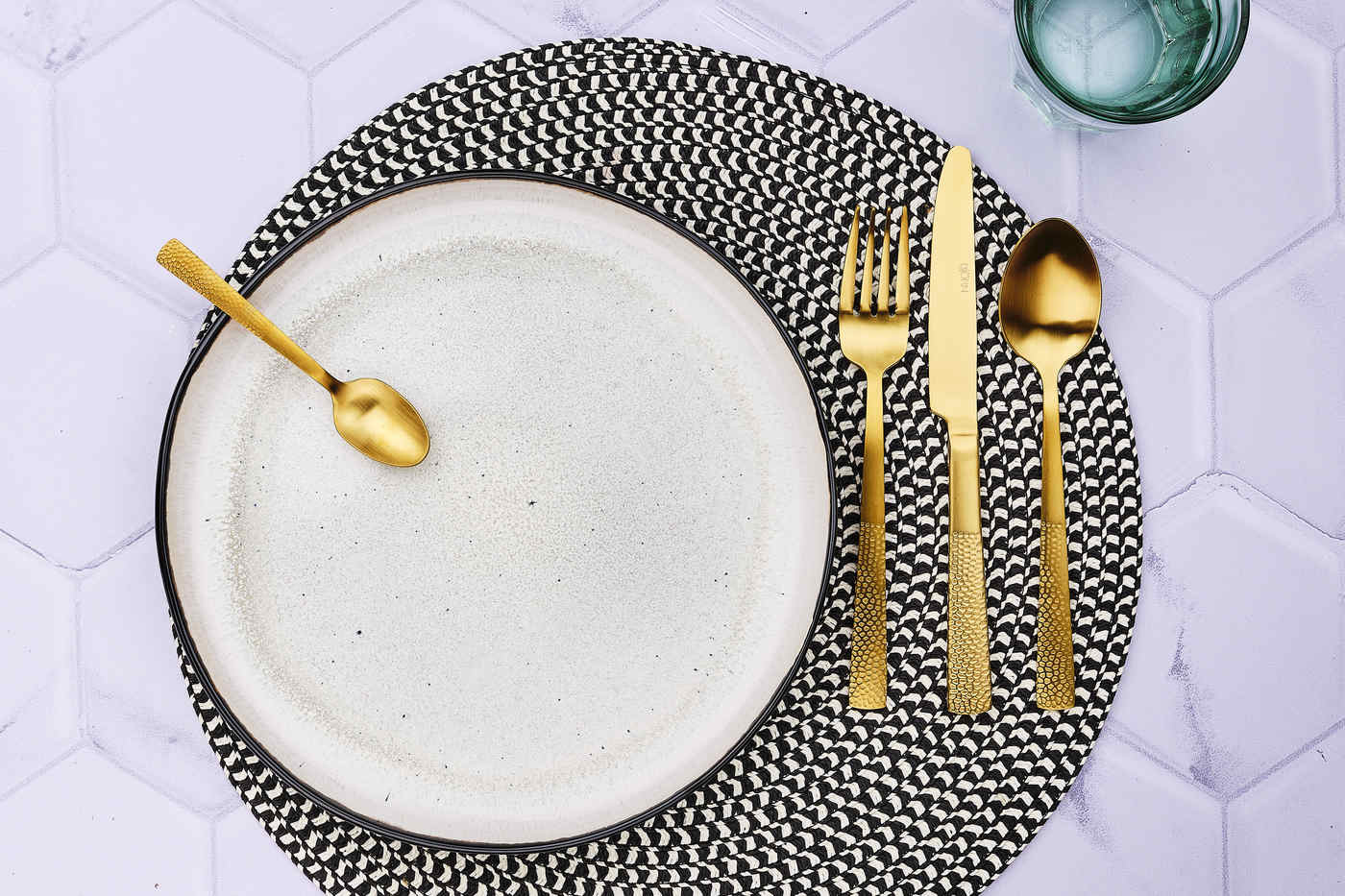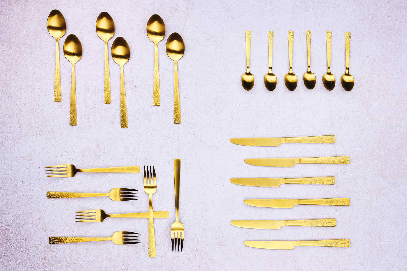 Fabriqué en acier inoxydable pour résister à une utilisation quotidienne, ces couverts sont durables et d'un entretien facile au lave-vaisselle. Dans sa version de couleur dorée avec une finition mate, ce modèle à l'effet miroir chic et éclatant illuminera votre table et étonnera vos convives.