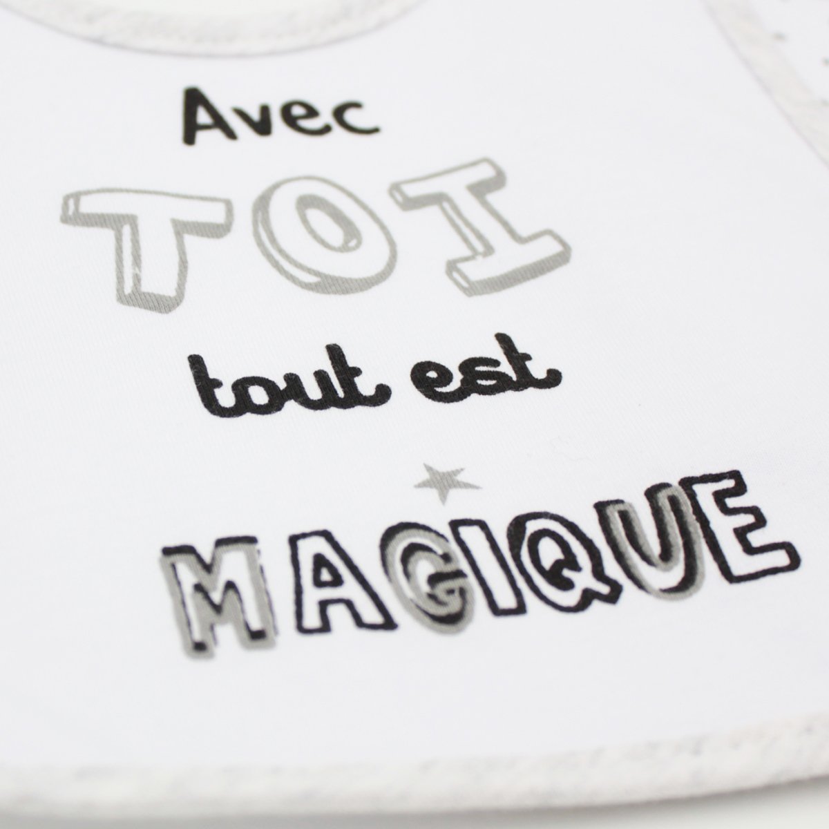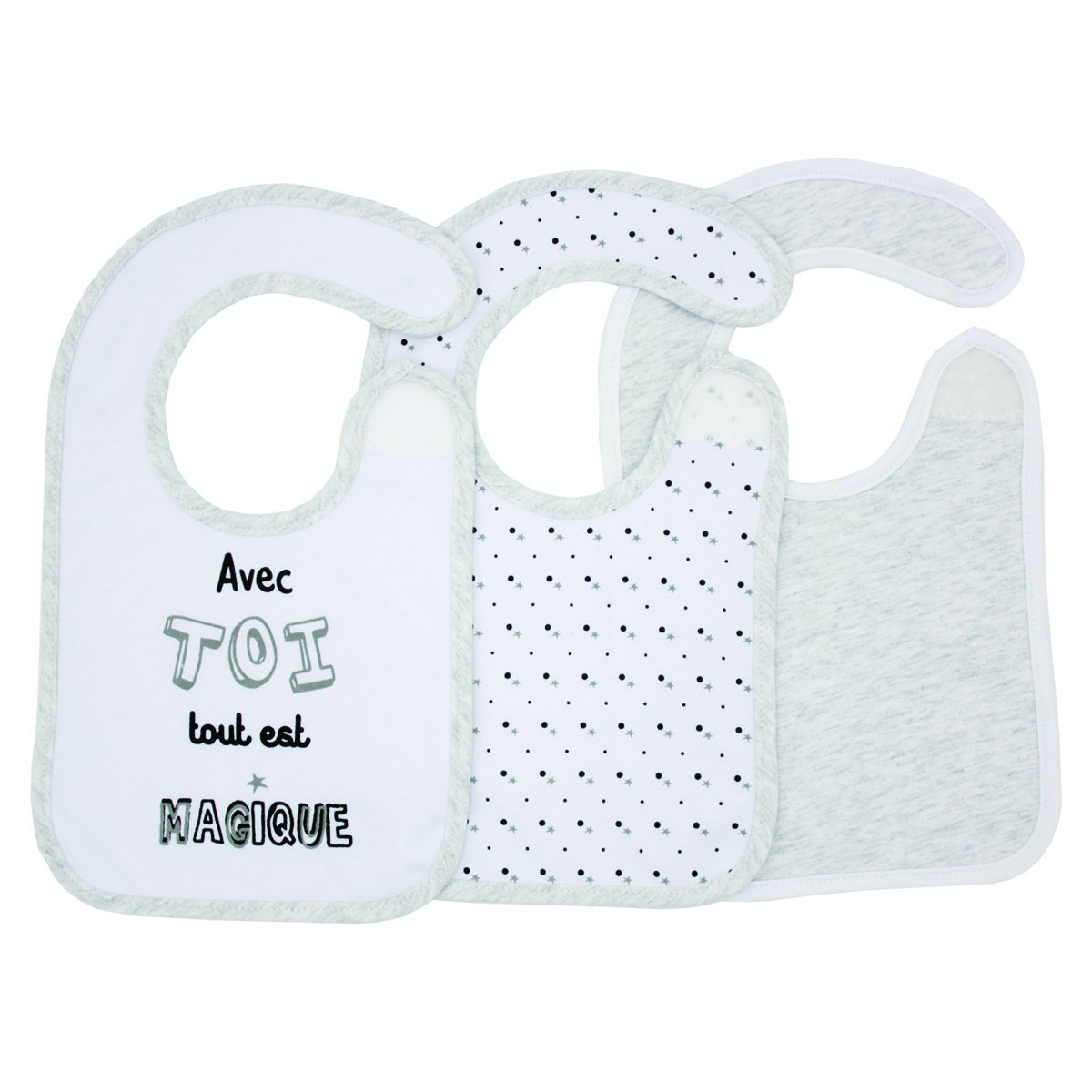| Libellé | Lot de 3 bavoirs naissance à scratch Bébé Magique |
