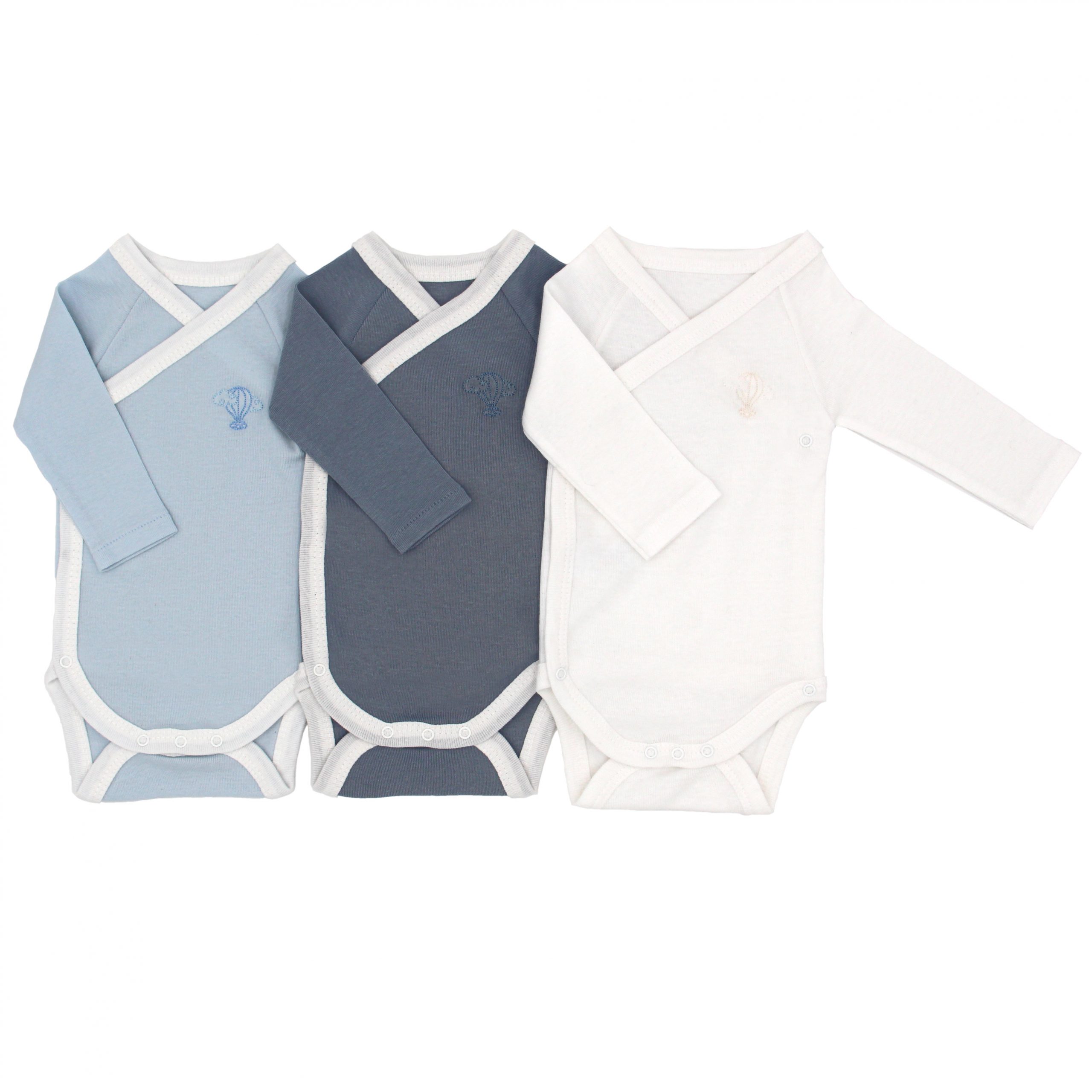 Les bodies croisés manches longues Premiers Moments sont spécialement conçus pour les premiers mois de bébé. Leur forme croisée (appelée aussi cache cœur ou kimono) permet d'habiller facilement bébé en limitant le nombre de manipulations. Pour la santé de bébé, les bodies Premiers Moments sont composés à 100% de coton biologique (tissu certifié GOTS) et bénéficient du label Oeko-Tex qui garantit l'absence de substances nocives ou irritantes pour la peau.