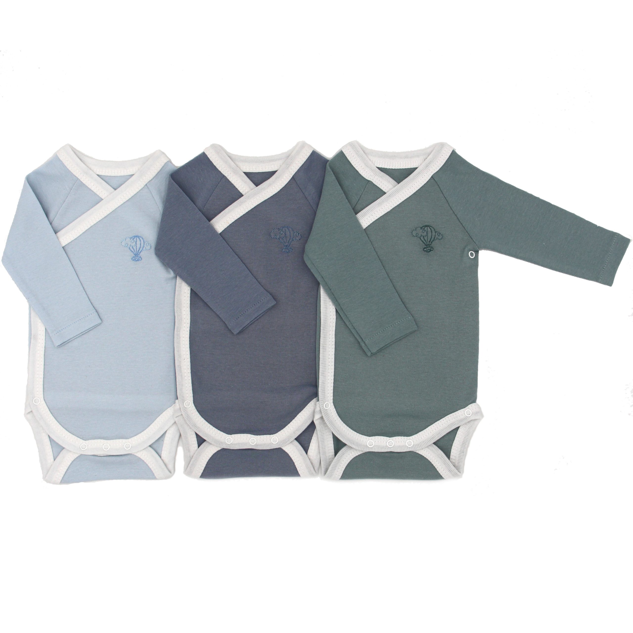 Les bodies croisés manches longues Premiers Moments sont spécialement conçus pour les premiers mois de bébé. Leur forme croisée (appelée aussi cache cœur ou kimono) permet d'habiller facilement bébé en limitant le nombre de manipulations. Pour la santé de bébé, les bodies Premiers Moments sont composés à 100% de coton biologique (tissu certifié GOTS) et bénéficient du label Oeko-Tex qui garantit l'absence de substances nocives ou irritantes pour la peau.