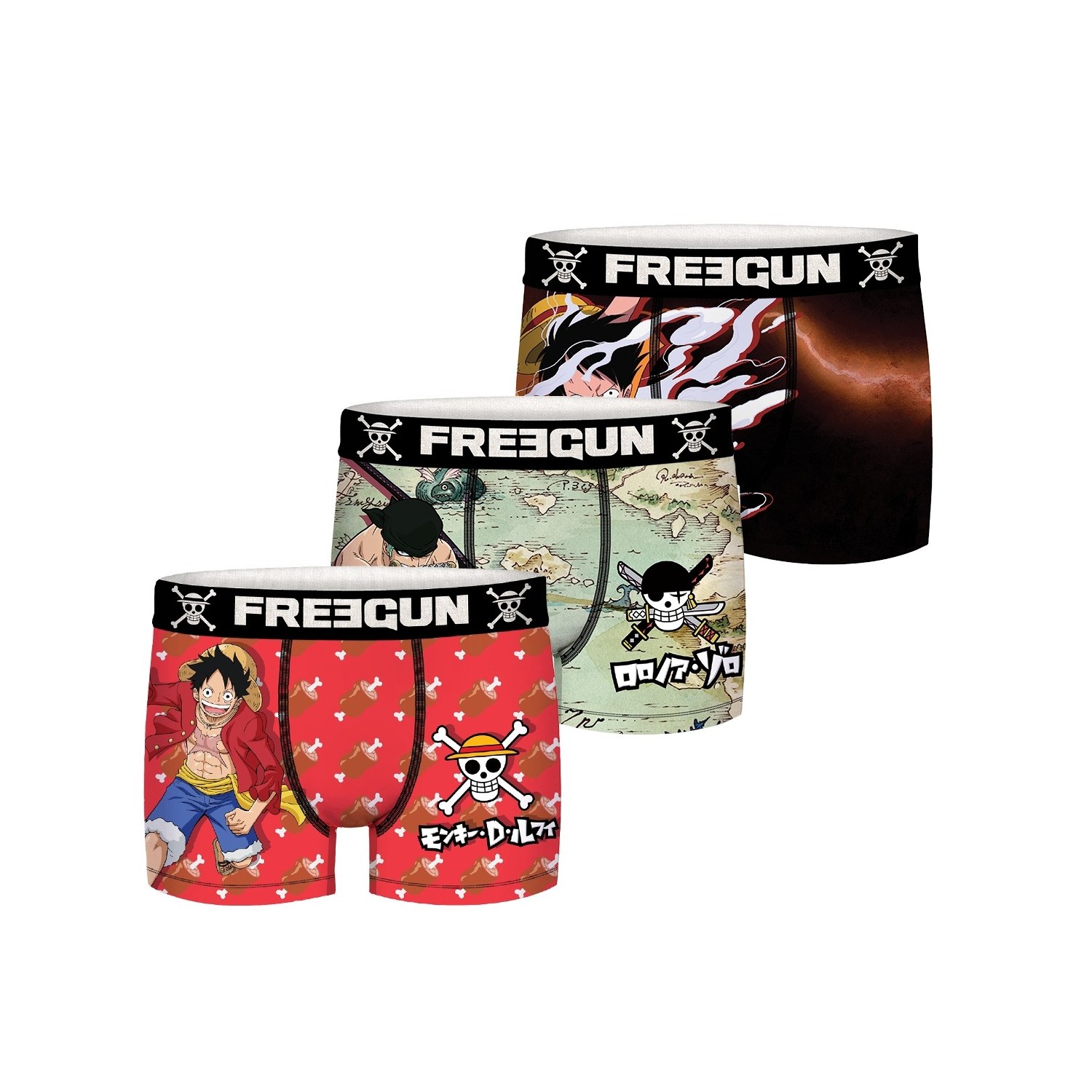 Nos caleçons Freegun Homme One Piece sont réalisés à base de 92% Polyester 8% Elasthanne / Doublure 100% Coton pour un maintien optimal, une liberté de mouvement incomparable dû à l'elasticité que contient le tissu du sous-vêtement et bien sur un confort à toute épreuve grâce à la douceur du textile microfibre et à la doublure en coton présente à l'interieur du slip Freegun. Les sous-vêtements Freegun sont Confort, Respirant, la ceinture élastique Large Noir permet une tenue accrue sans gêne. Dans ce pack de boxers nous vous proposons différents coloris : Noir,Rouge,Vert. Si vous êtes un passionné de One Piece, n'hésitez pas à adopter un style décalé et fun ! Ce lot de boxers Freegun est lavable en machine à 30°C et resistera à la décoloration. Les imprimés Freegun sont dessinés en France, nos équipe graphistes recherchent sans cesse de nouveaux design inédits à arborer sur nos calecons. Ces sous-vêtements Freegun sont disponibles en taille S, M, L, XL, XXL, conformément aux standards de tailles européennes. Ne pas sécher au sèche linge, ne pas repasser.