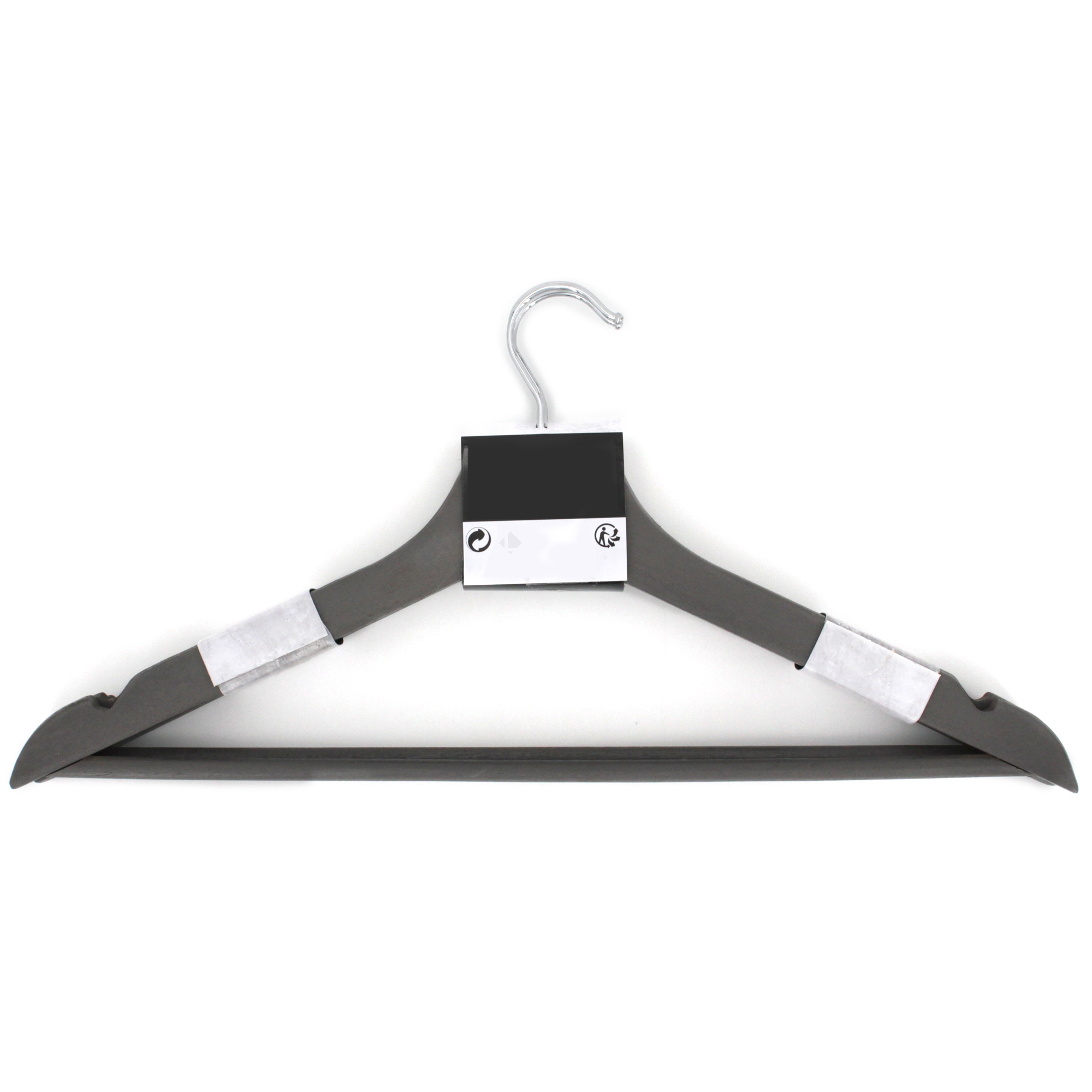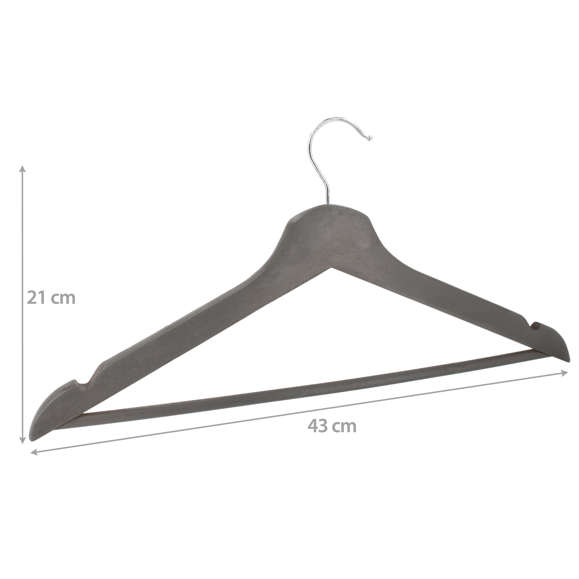 | Plus produit | Lot de 3 cintres en bois coloris gris avec barre et encoche antiglisse et crochet pivotant 360° |