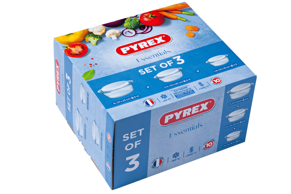 Lot de 3 cocottes en verre 1,3L + 2,1L +3,2L Lot permanent