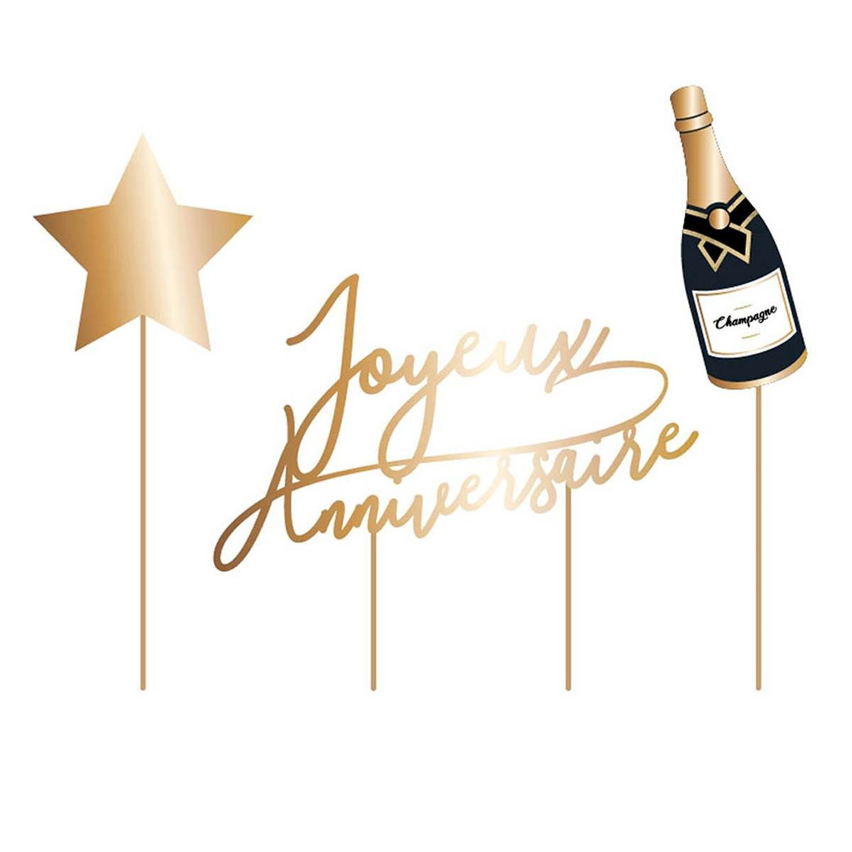| Libellé | Lot de 3 Décoration de Gâteaux "Anniversaire" 28cm Or |