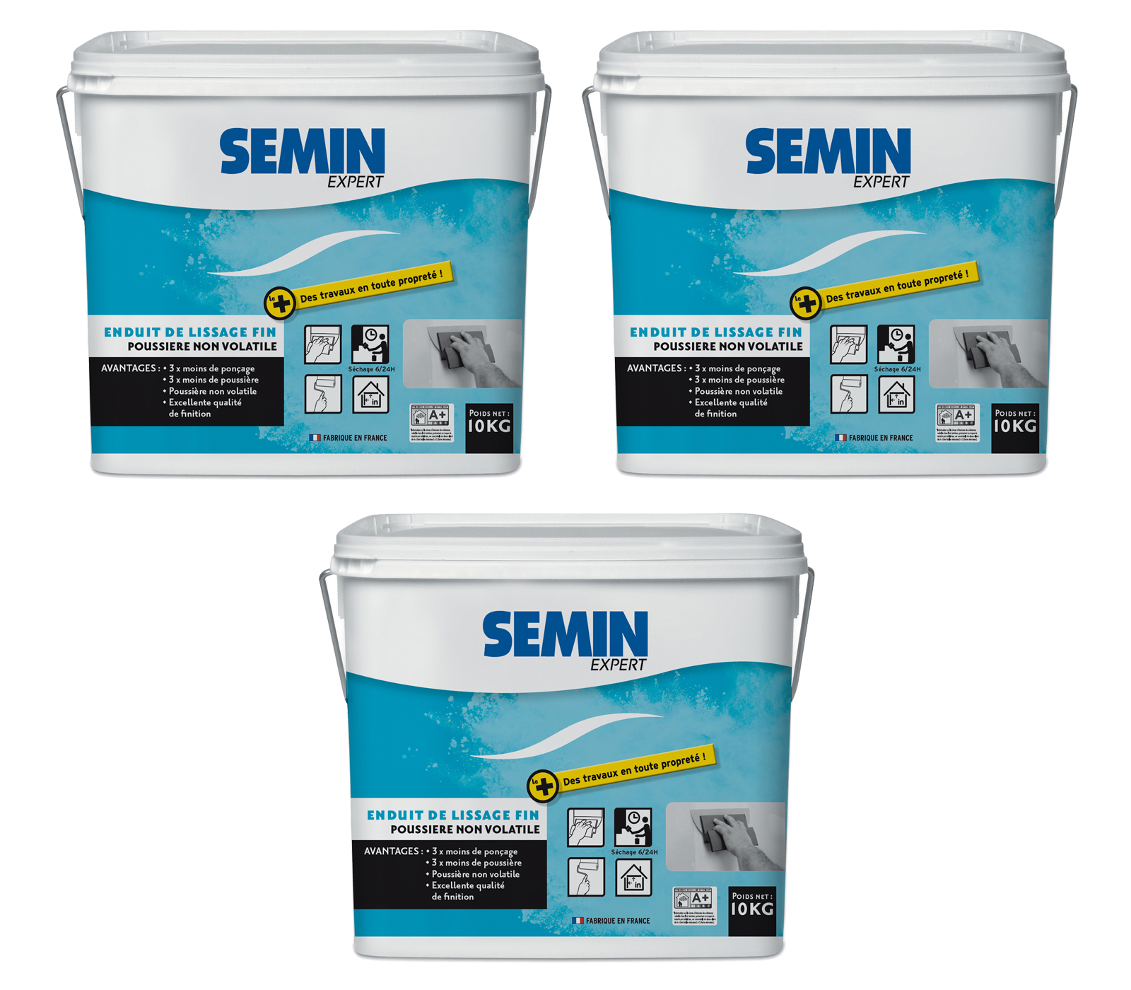 | Libellé | Lot de 3 enduits de lissage poussière maîtrisée pour finition des murs Semin - seau de 10 kg |