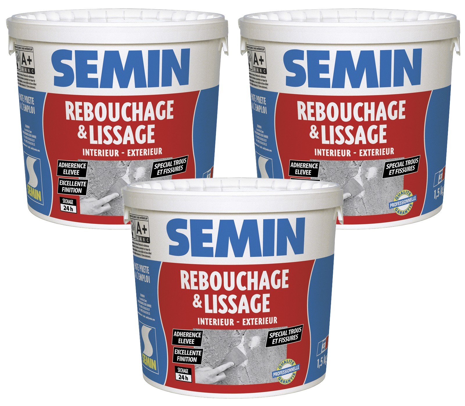 | Libellé | Lot de 3 enduits de rebouchage en pâte spécial fissures et trous de vis Semin - seau de 1,5 kg |