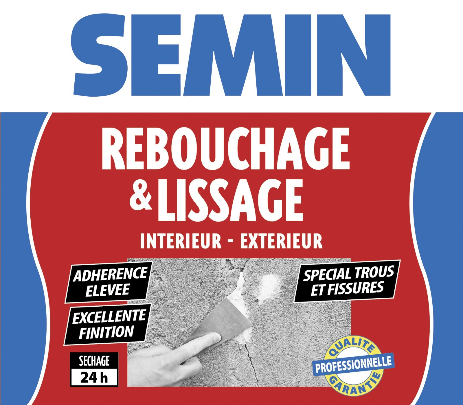 Semin Rebouchage et Lissage de 1,5 kg est un enduit de rebouchage pour trous et fissures de petites tailles (le conditionnement en tube est idéal pour reboucher les trous de vis). Sa granulométrie fine donne une excellente qualité de finition..