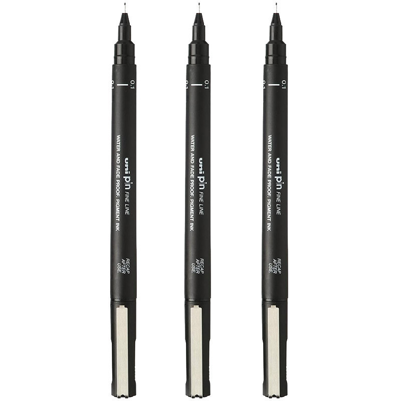 Lot de 3 feutres de dessin uni pin - 0.1mm - Noir - Uni-ball