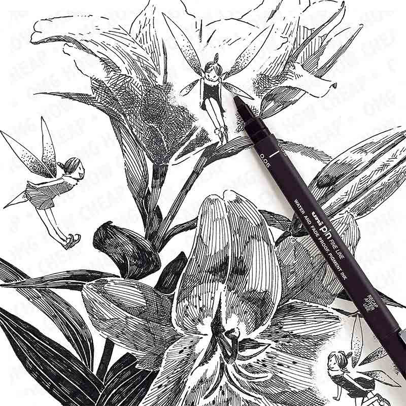 - Sèchant très vite, l'encre waterproof vous permet d'aquareller vos dessins sans bavures.
