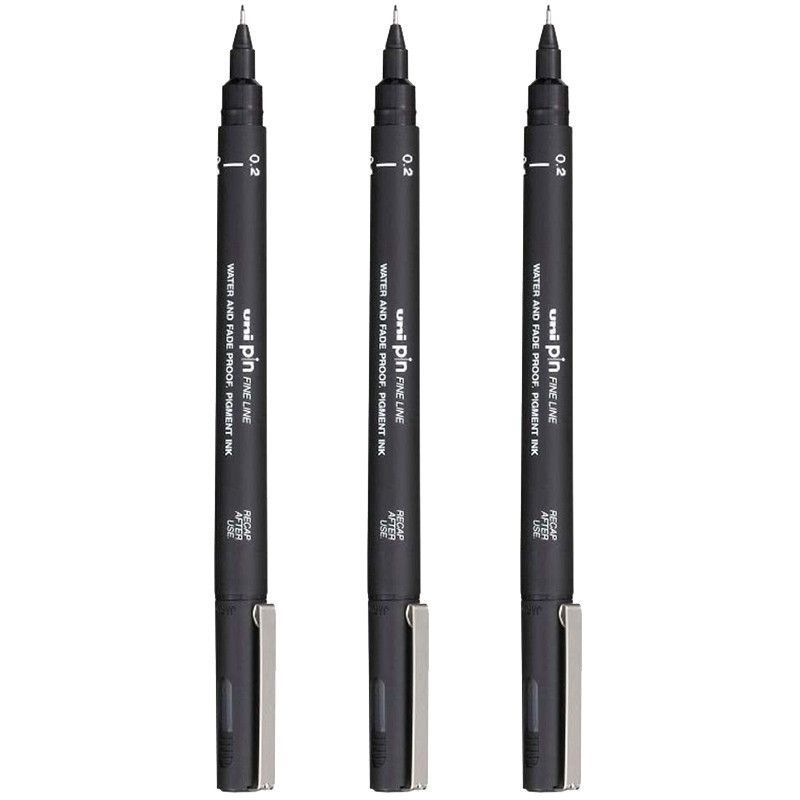 Lot de 3 feutres de dessin uni pin - 0.2 mm - Noir - Uni-ball