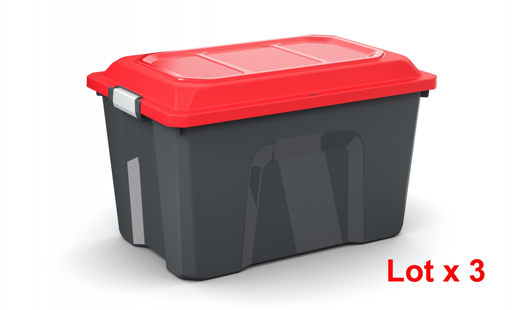 LOT X3 - Malle de rangement Dimensions : L.58 x l.38.5 x h.36.5 cm (produit seul - couvercle fermé) Capacité : 60L env. Se ferme par 2 poignées Couvercle avec charnière intégrée. Robuste et superposable Fabriqué en France Fabriqué à 95% à partir de PP recyclé