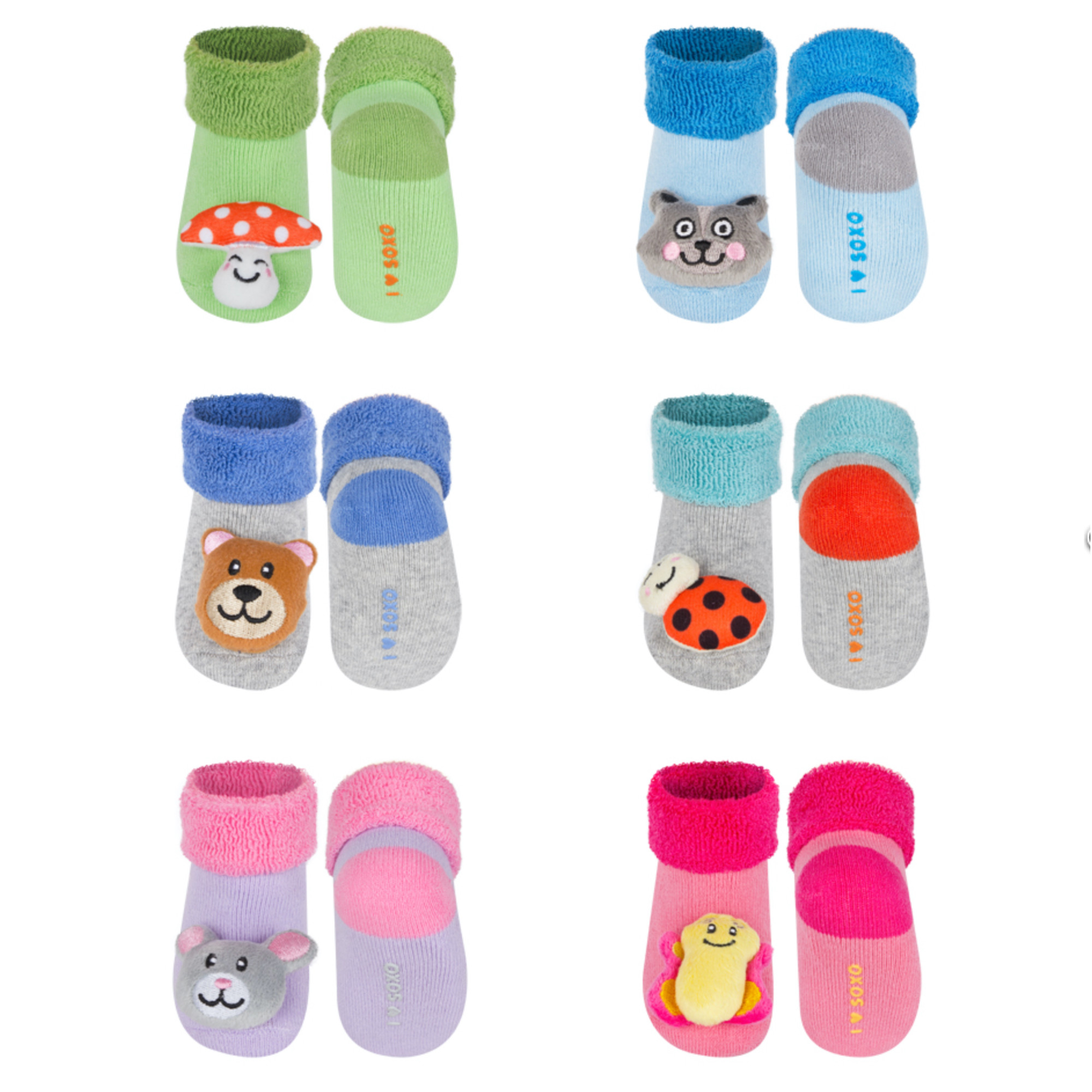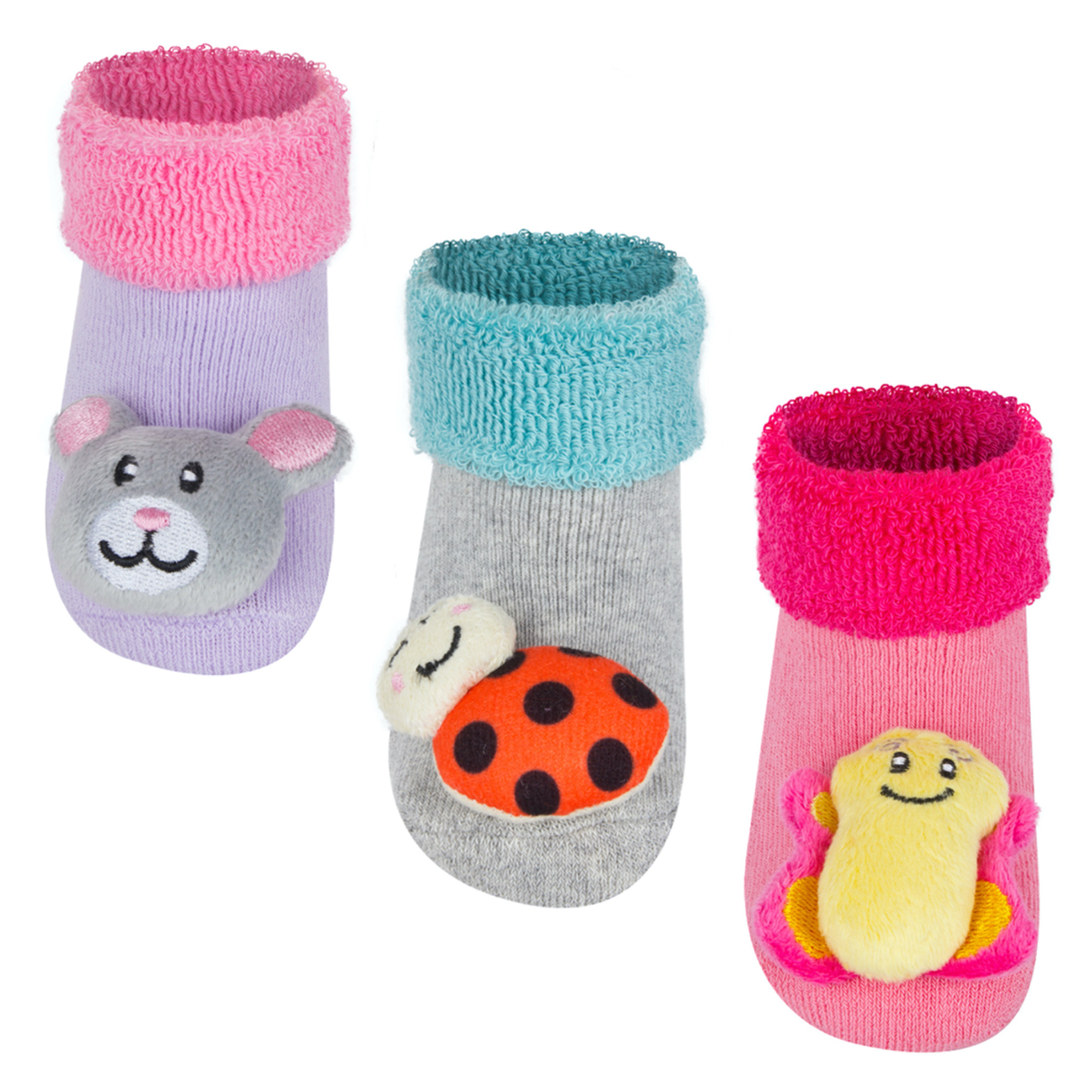 Chaque lot contient 3 paires différentes aux couleurs attrayantes et aux motifs ludiques pour amuser Bébé toute la journée, à chaque mouvement de pied ! Votre enfant ne résistera pas à l'envie d'attraper ses pieds pour saisir les adorables peluches.