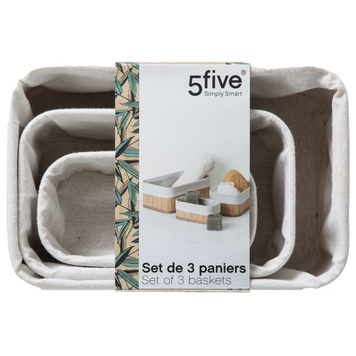 | Libellé | Lot de 3 paniers en bambou naturel et polyester |