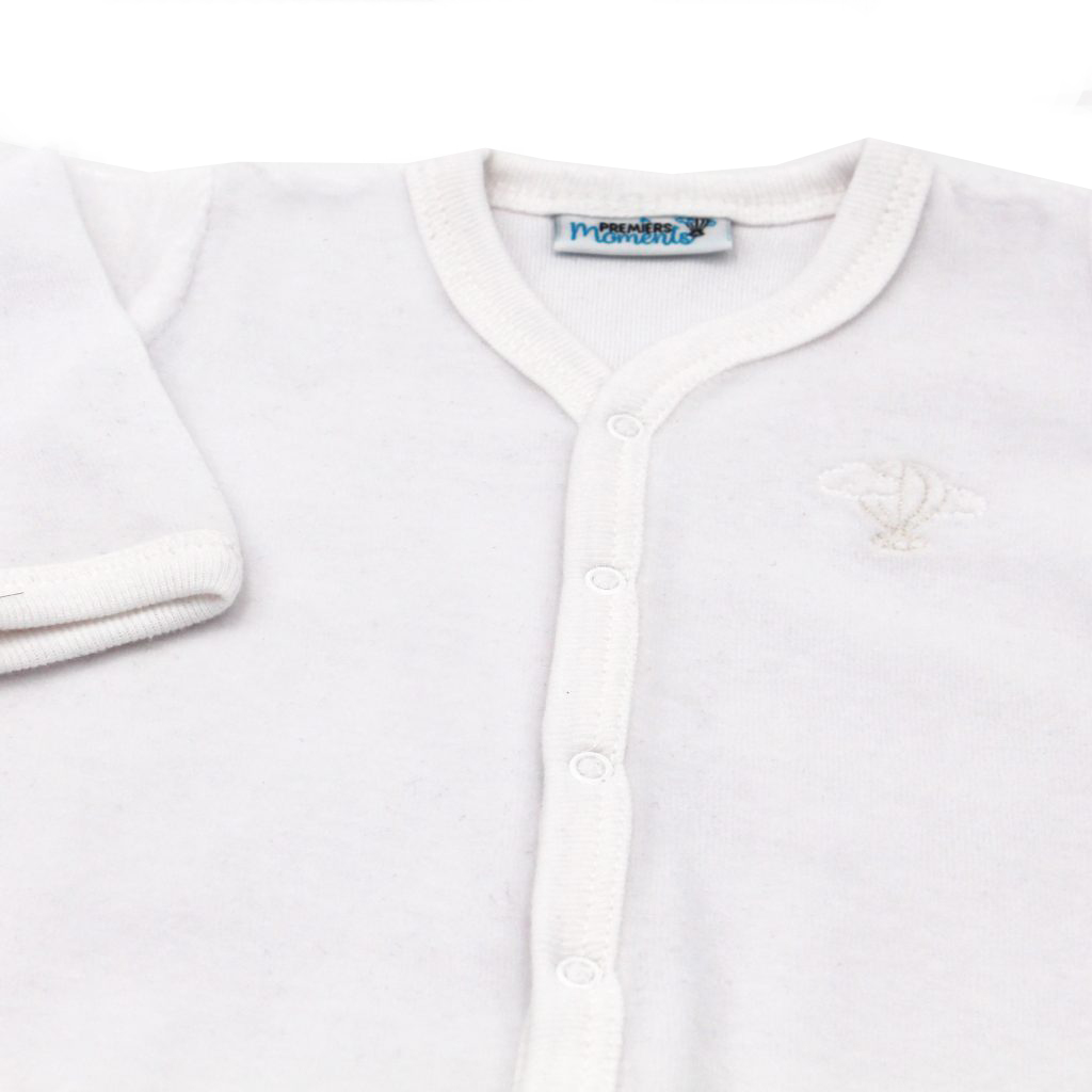 Les pyjamas velours Premiers Moments sont spécialement conçus pour la naissance et les premiers mois de bébé. Leur ouverture par l'avant, avec leurs boutons pressions qui descendent jusqu'au bas des deux jambes, permet d'habiller facilement bébé en limitant le nombre de manipulations. Pour la santé de bébé, les pyjamas Premiers Moments sont composés à 100% de coton biologique (tissu certifié GOTS) et bénéficient du label Oeko-Tex qui garantit l'absence de substances nocives ou irritantes pour la peau.