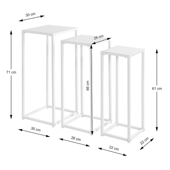 Lot de 3 Sellettes en Métal "Cromano" 71cm Blanc